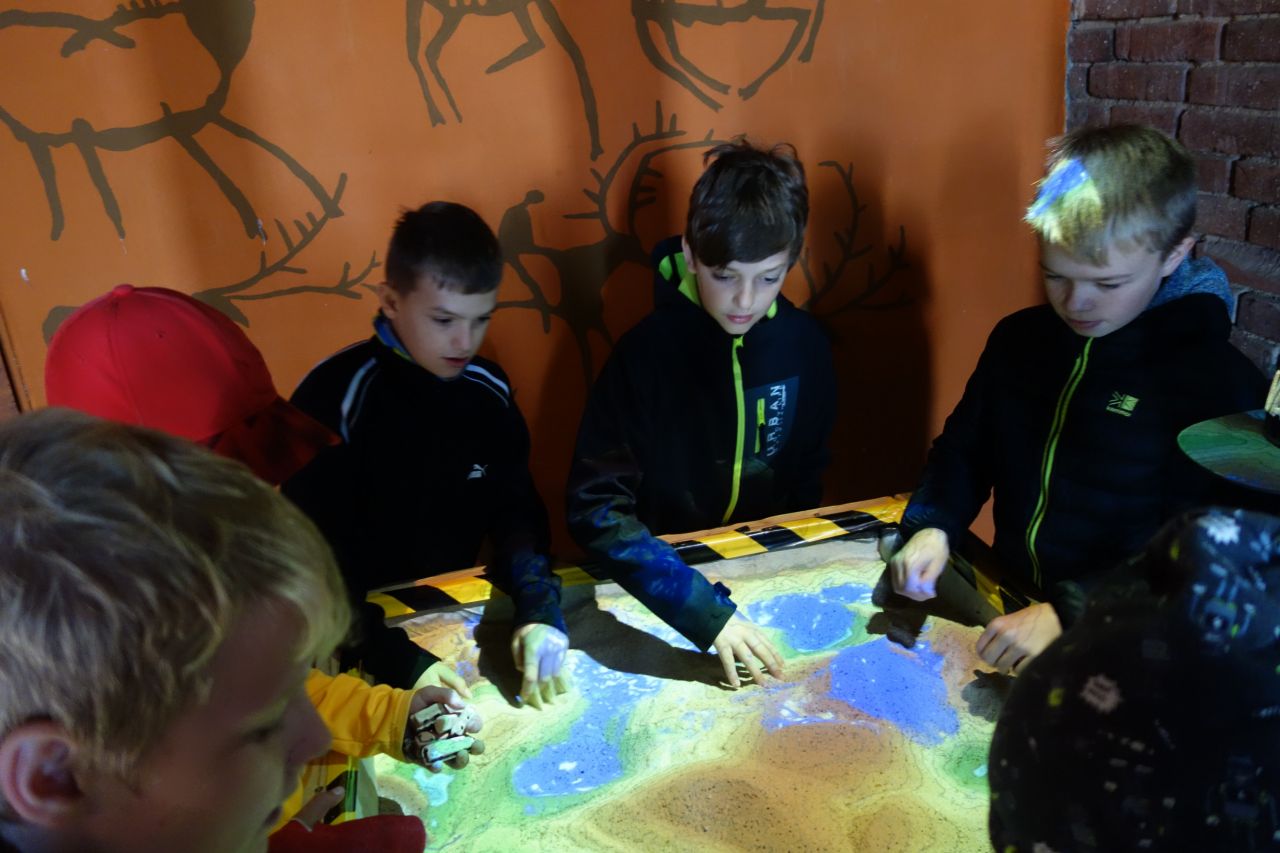 vyzkoušeli pracovat s krajinou, přírodními vlivy a vlivy člověka při osidlování krajiny – 3D pískoviště.