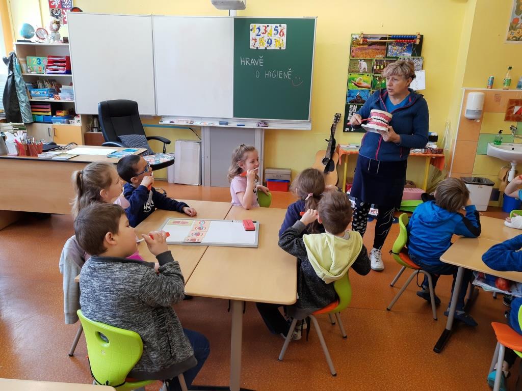 Program HOP jsme zažili v tomto roce už podruhé. Tentokrát byla tématem Hygiena. Pod vedením lektorky si děti zkusily pracovat v šestičlenném týmu, což byla pro některé z nich trochu výzva. Musely dát tzv. hlavy dohromady, přemýšlet co ví, odpovídat na otázky, třídit obrázky, učily se rozhodovat, spolupracovat. Zopakovaly si např. jak si správně čistit zuby a mýt ruce. Tak si přejme, aby nezůstalo jen u informací, ale aby co nejvíce správných hygienických návyků děti skutečně dodržovaly a učily se o své zdraví pečovat.