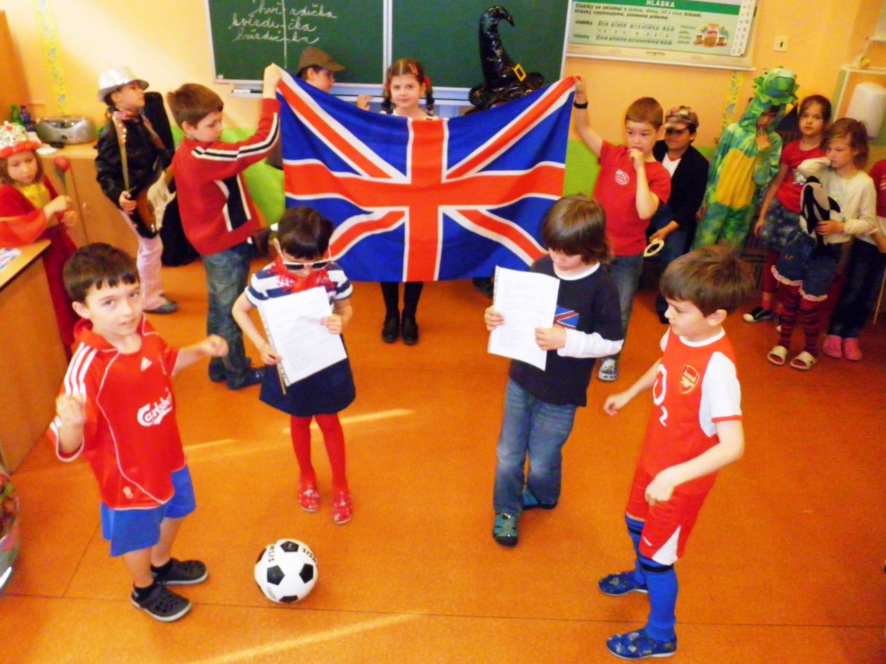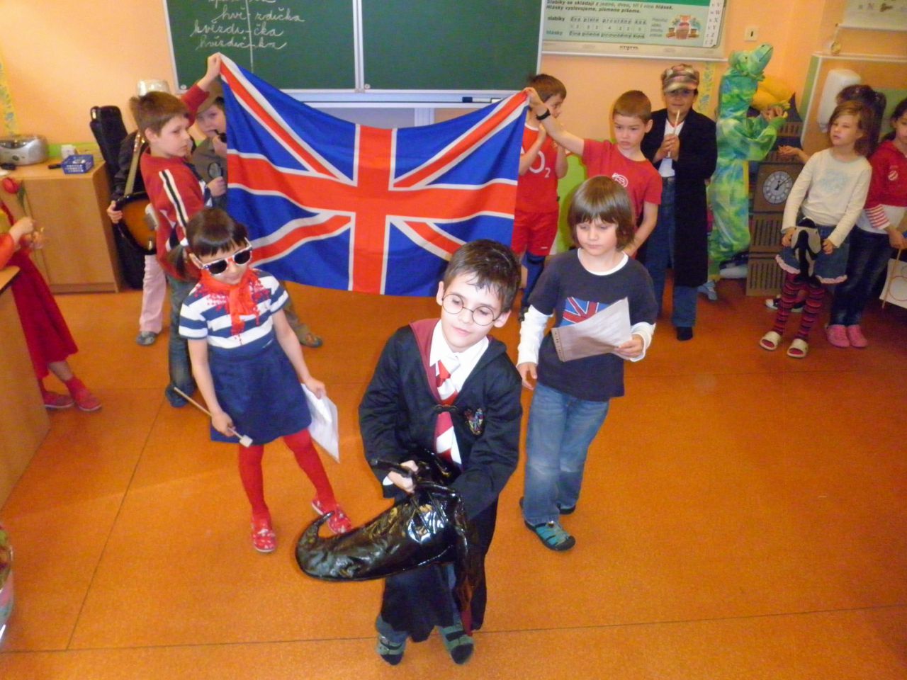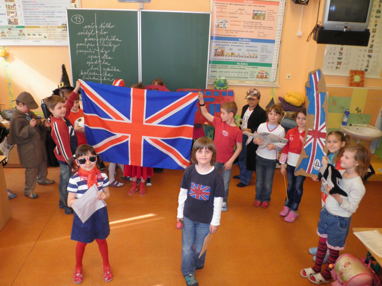 Na školní projekt ¨My Evropané¨ jsme se docela těšili. Společně jsme tvořili, malovali, zpívali, zkoušeli, nacvičovali a nakonec se všemi potřebnými rekvizitami, oblečeni do masek, nebo v národních barvách Británie, své vystoupení v tělocvičně školy odehráli. Poděkování patří všem rodičům, kteří nám s maskami a přípravou rekvizit pomohli. Děkujeme.