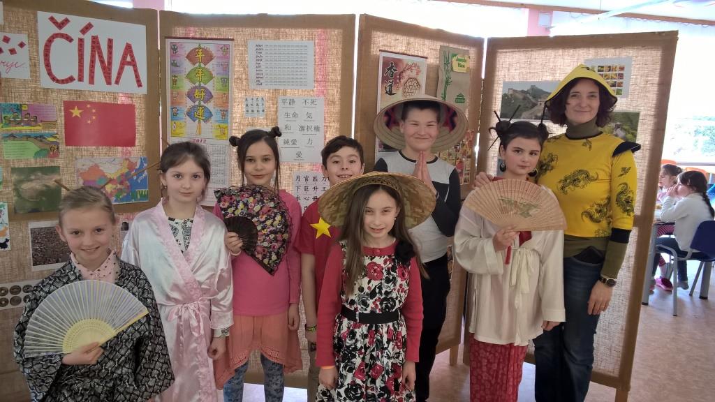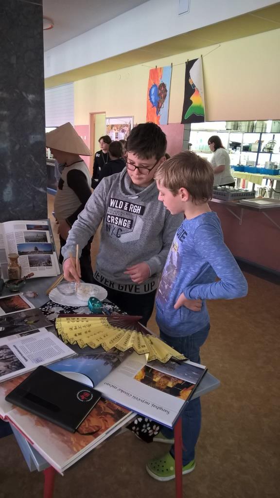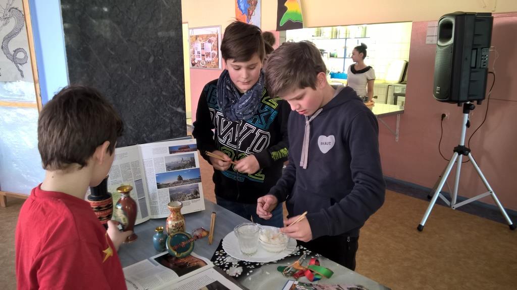 Jeden den koncem každého měsíce se naše školní jídelna malinko promění. Z reproduktoru hraje cizokrajná hudba, spolužáci starší či mladší chodí mezi jinými dětmi v maskách, objeví se paravany na kterých jsou umístěné obrázky, texty, zajímavosti, někdy malá výstavka knih nebo jiných zajímavých předmětů. Paní kuchařky uvaří netradiční jídlo. Společný jmenovatel toho všeho je - jedna země nebo kontinent, který se snaží žáci ve spolupráci se školní jídelnou představit a přiblížit druhým. Právě únor byl měsíc, který jsme si vybrali, abychom představili kontinent Asii - konkrétně Čínu. Děti si tuto zemi zvolily samy, přinesly mnoho materiálů a aktivně se podílely na přípravě, za což jim patří právem pochvala. A výsledek? Stačí prohlédnout galerii snímků.