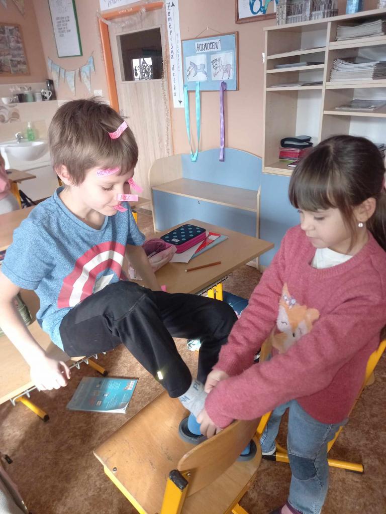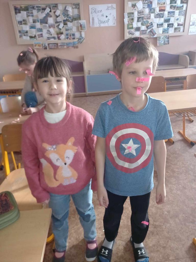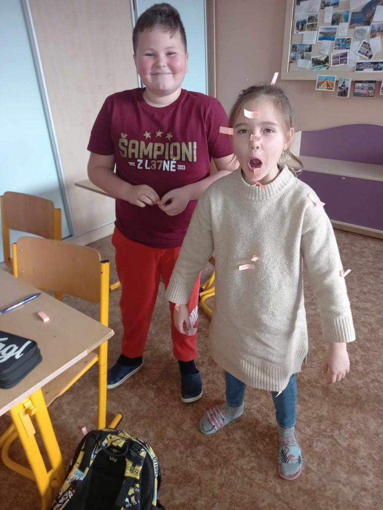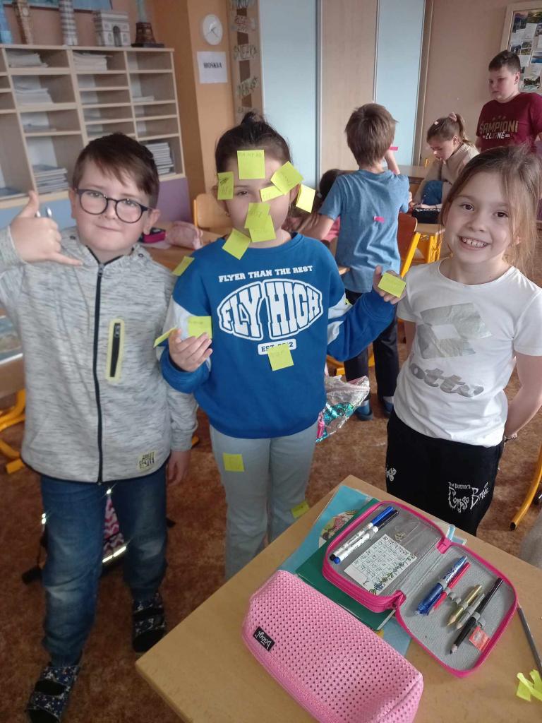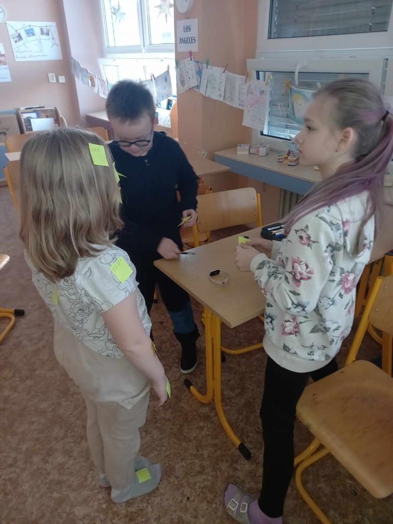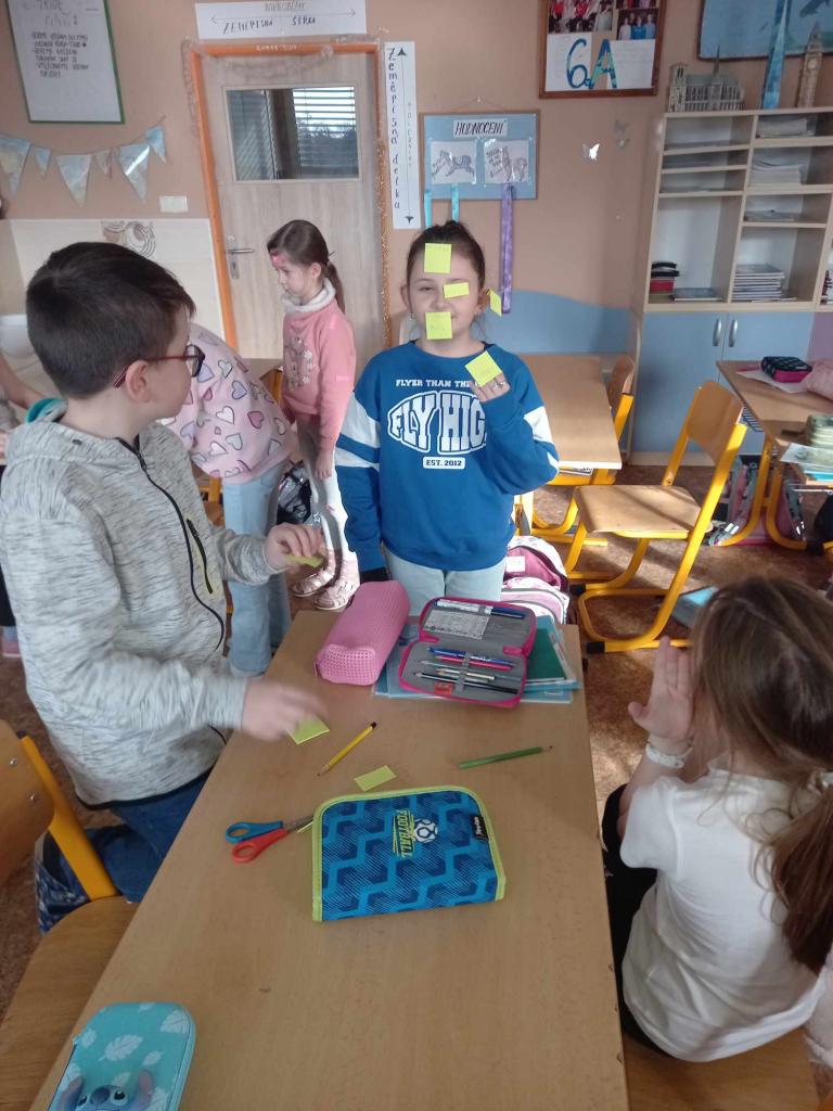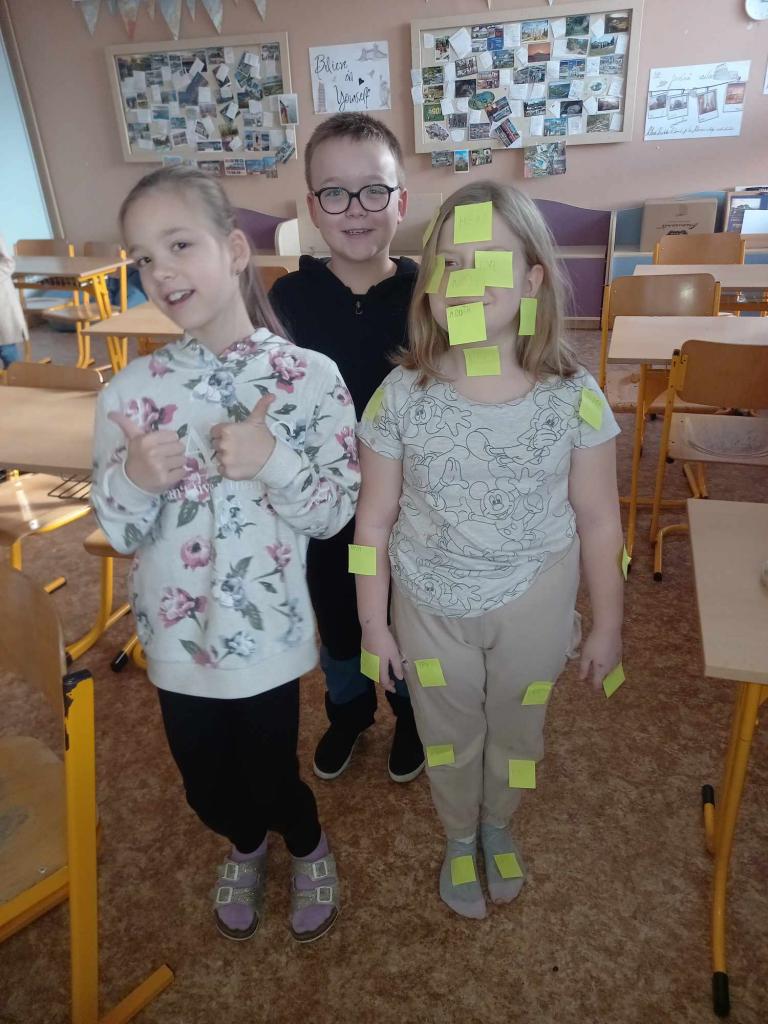 Žáci 3.B prokázali, že anglickou slovní zásobu na téma části těla - body parts, mají velkou. V rámci skupinové práce si děti připravily lístečky se všemi částmi těla, na které si vzpomněly. Následně ve svém týmu vybraly jednoho modela/modelku a na jeho tělo lístečky umísťovaly. Pokud se vyskytla nějaká chybka bylo to většinou v napsání slovíčka, a to jsme hravě na druhý pokus společně opravili.
