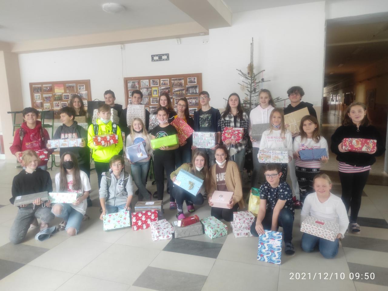 Žáci 4.A, 6.A, 7.C, 9.A a 9.B se zapojili o charitativní akce krabice od bot. Zdánlivě obyčejná krabice ukrývá plno vánočních dárku pro děti, které nemají tolik štěstí, aby pod jejich vánočním stromečkem bylo spousta dárku. A i když jsme tuto akci zaznamenali téměř pozdě, i 24 hodin stačilo k tomu, aby žáci těchto tříd přinesli spousty dárků. Některé již v krásně zabalené krabici od bot, některé pak společně paní vychovatelka Mirka Pýchová společně s paní asistentkou Veronikou Rožičovou zabalily. A ačkoli o akci původně věděli jen žáci druhého stupně, své krabice přinesli i žáci paní učitelky Kochlöflové ze 4.A. Celkem se sešlo 43 plných krabic, které se sotva vešly do auta. Své nové majitele dárky získají díky Diakonii v Mostě, kde se všechny krabice "sejdou" a následně rozvezou do azylových domů, nízkoprahových center a tam, kde dětem udělají radost.