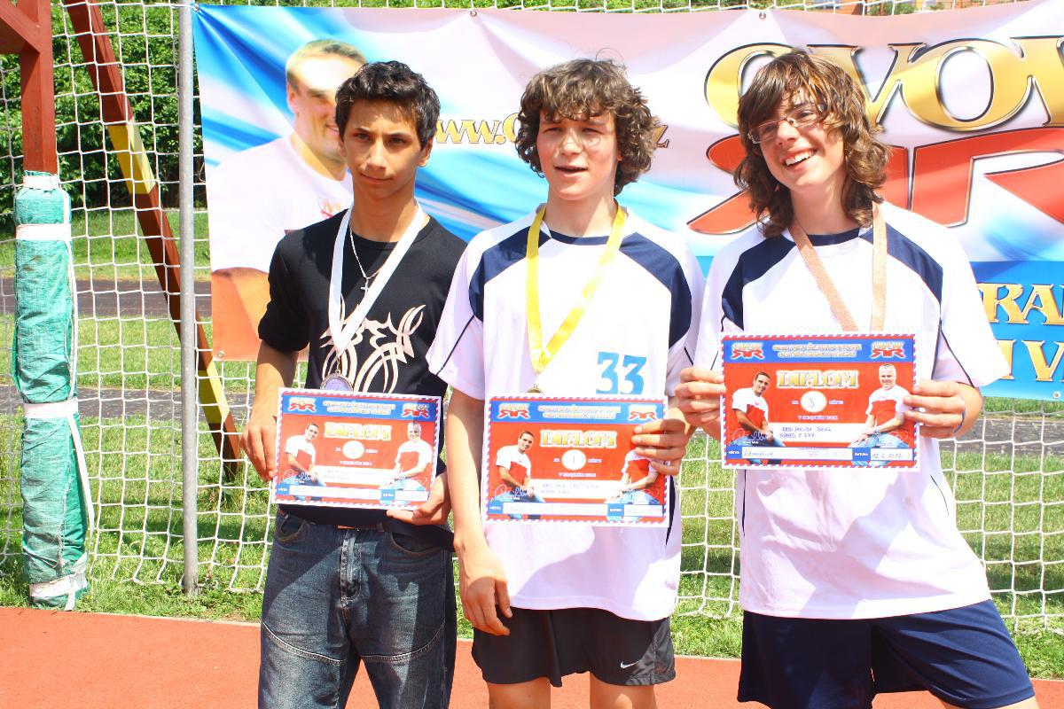 A byl tu závěrečný nástup s vyhlašováním výsledků. Nejprve jednotlivci. Mezi dívkami zvítězila Alice Svobodová, mezi chlapci Jan Zabystřan. Medailovou sbírku rozšířil ještě třetím místem Jakub Beck. Zlatým hřebem bylo vyhlašování výsledků družstev. Když přišlo na medailové pozice, nejprve bylo vyhlášeno třetí místo – ZŠ Postoloprty ….. druhé místo – ZŠ Vansdorf… v tu chvíli vybuchli všichni nadšením, protože o našem vítězství již nemohlo být pochyb. Obdrželi jsme diplom a pohár a hlavně – vstupenku na republikové finále do Prahy. Nemůžeme se dočkat. Máme spoustu rezerv. Pořád je co zlepšovat, tak do září na tom zapracujeme, abychom v konkurenci těch nejlepších týmů republiky neudělali naší škole ostudu.