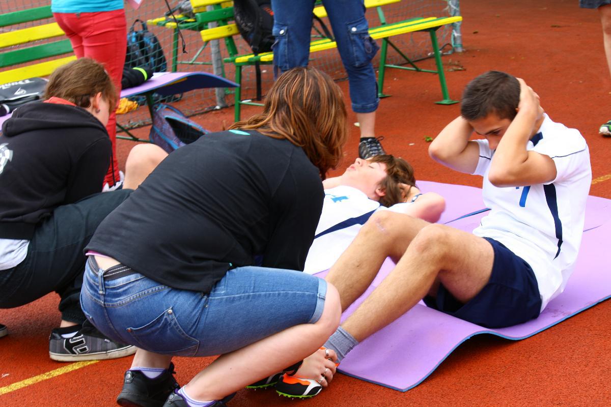 Rozlosování soutěže nám jako první disciplínu přiřklo lehy-sedy. Patří mezi naše nejsilnější, což jsme potvrdili svými výkony. Téměř všichni jsme si zlepšili svá osobní maxima a čtyři z nás se dostali přes hranici 100 leh-sedů za dvě minuty (Jan ZABYstřan -135, Jakub Drbohlav – 115, Kateřina Zapletalová – 110, Alice Svobodová 105). Už tato úvodní disciplína nás katapultovala do čela průběžného pořadí, kterého jsme se nechtěli do konce soutěže vzdát.