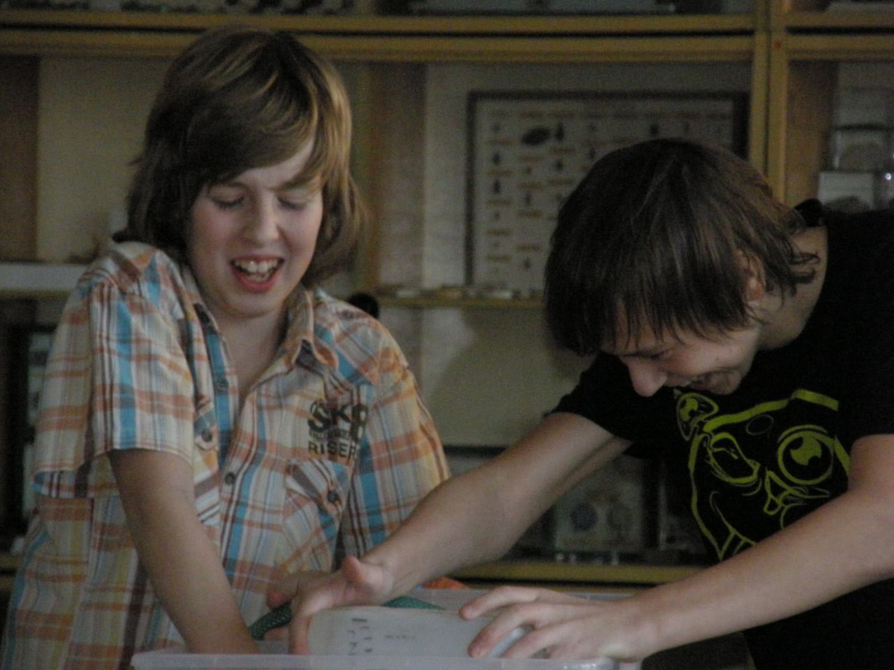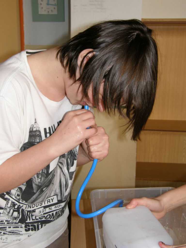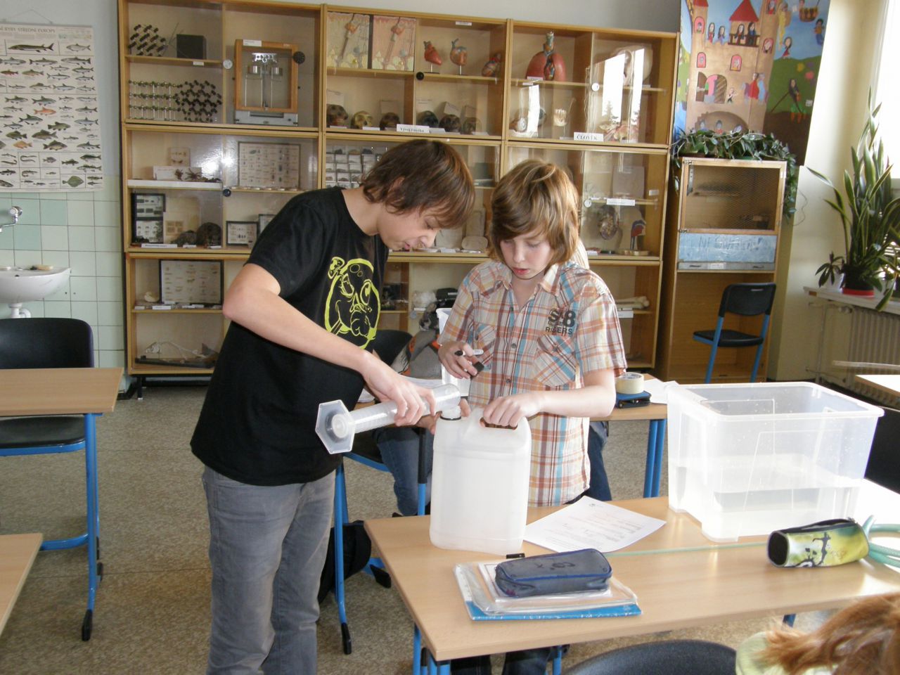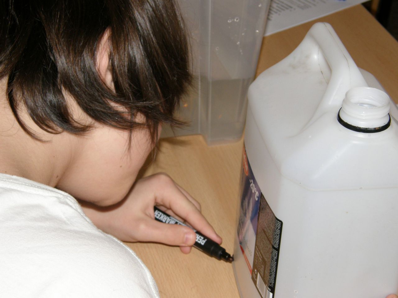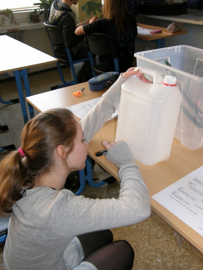 přinést si do dvojice - průhledná láhev/kanystr 3-5 litrů, hadička 1 metr, stopky, čtvrtka A5, izolepa, nůžky, lihová fixa