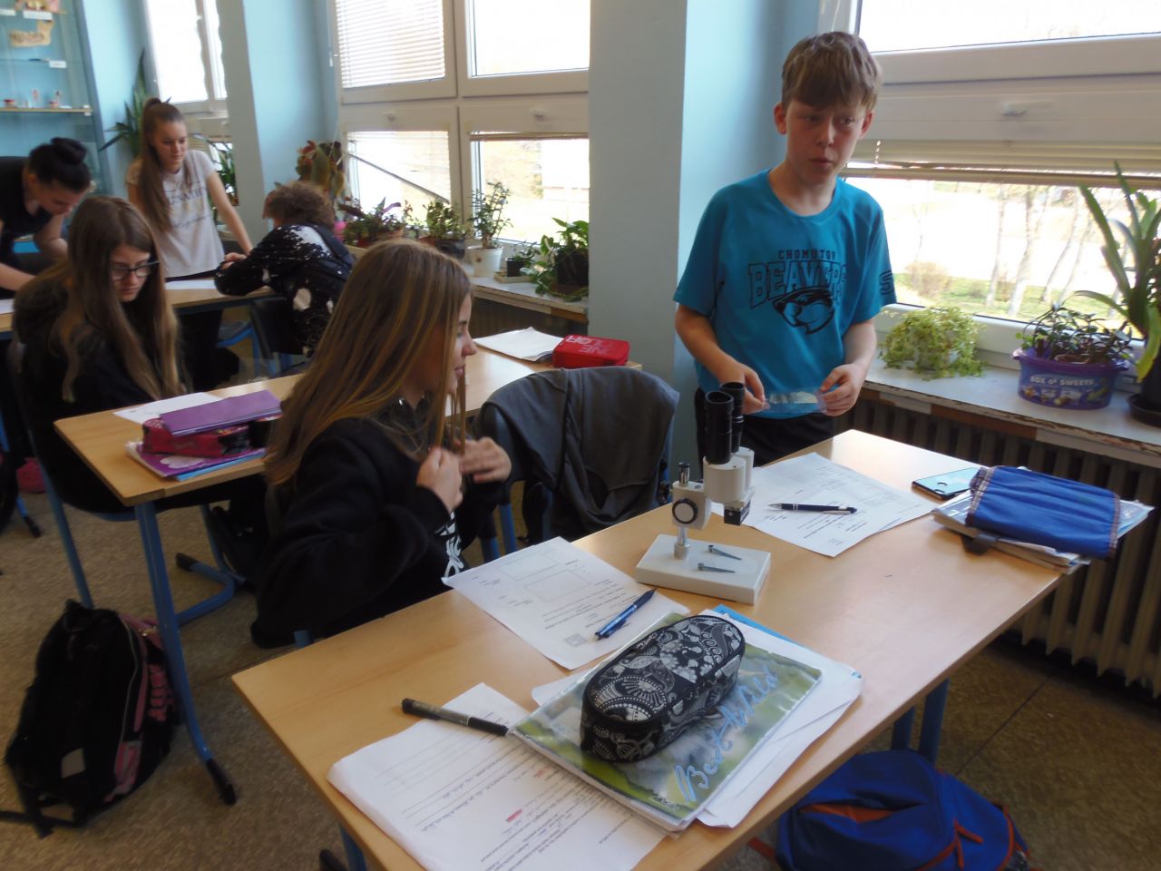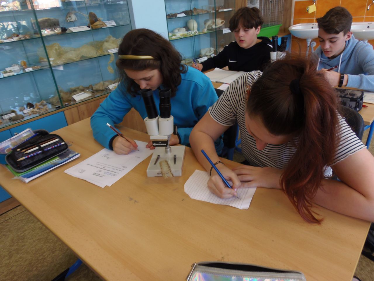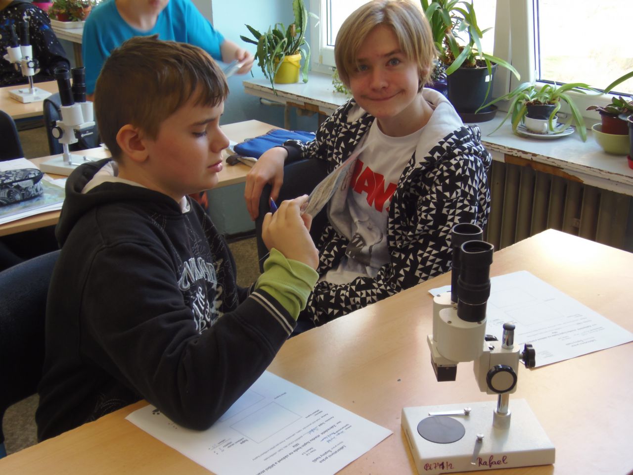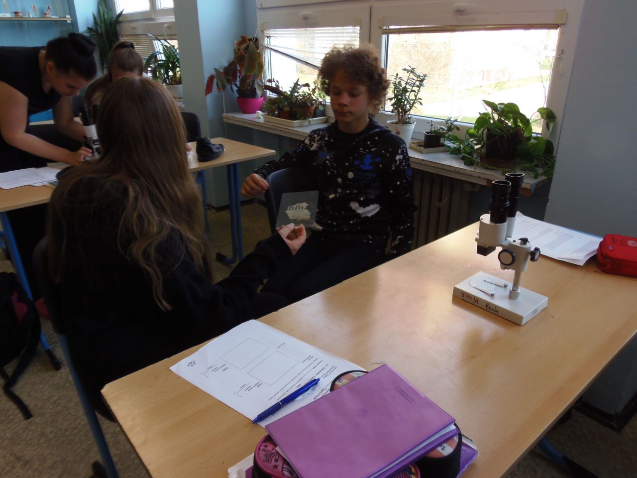 Pozorování struktury hadí kůže, odlišností ve stavbě břišních a hřbetních šupin. V této práci vyhrazen čas pro pozorování objektů mimo zadané téma pomocí binokulární lupy.