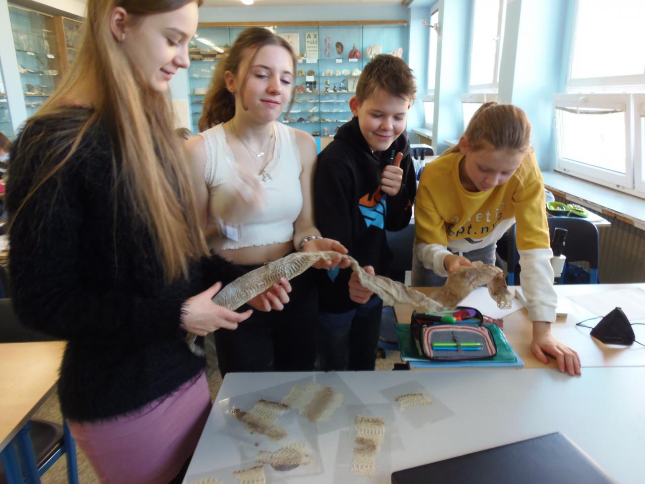 V laboratorní práci jsme pro doplnění učiva o plazech zkoumali binokulární lupou stavbu šupin hadů pod binokulární lupou