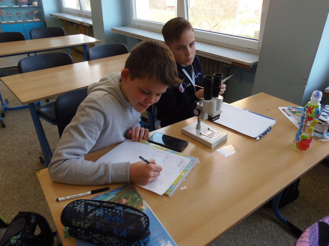 V laboratorní práci jsme si pod binokulární lupou prohlédli stavbu obrysového a prochového ptačího pery