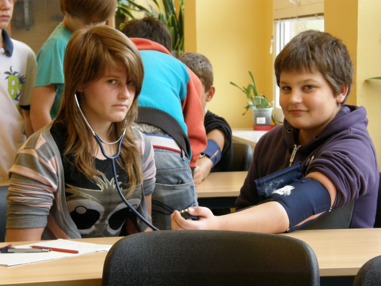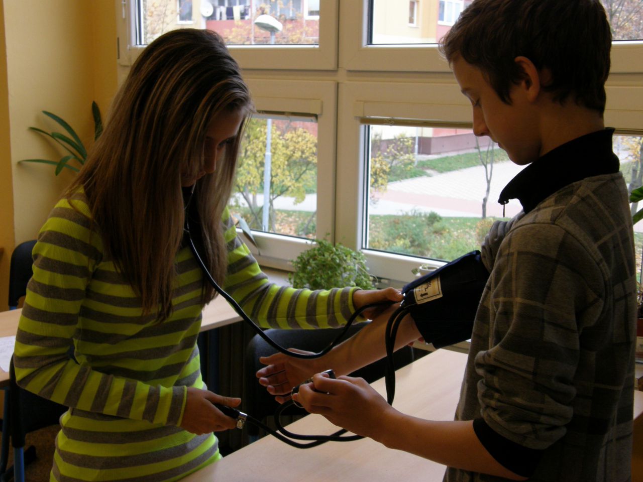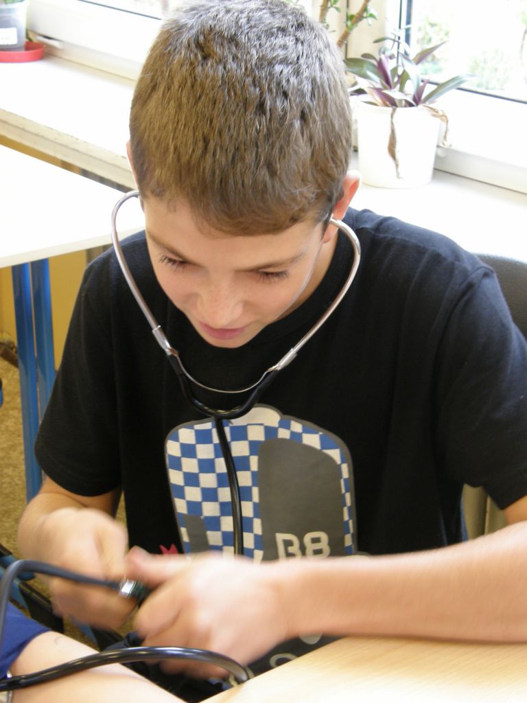 Pozorování a posouzení práce vlastní cévní soustavy, změny v souvislosti se zátěží výkonu, EKG, poslech srdečních ozev, měření tlaku.