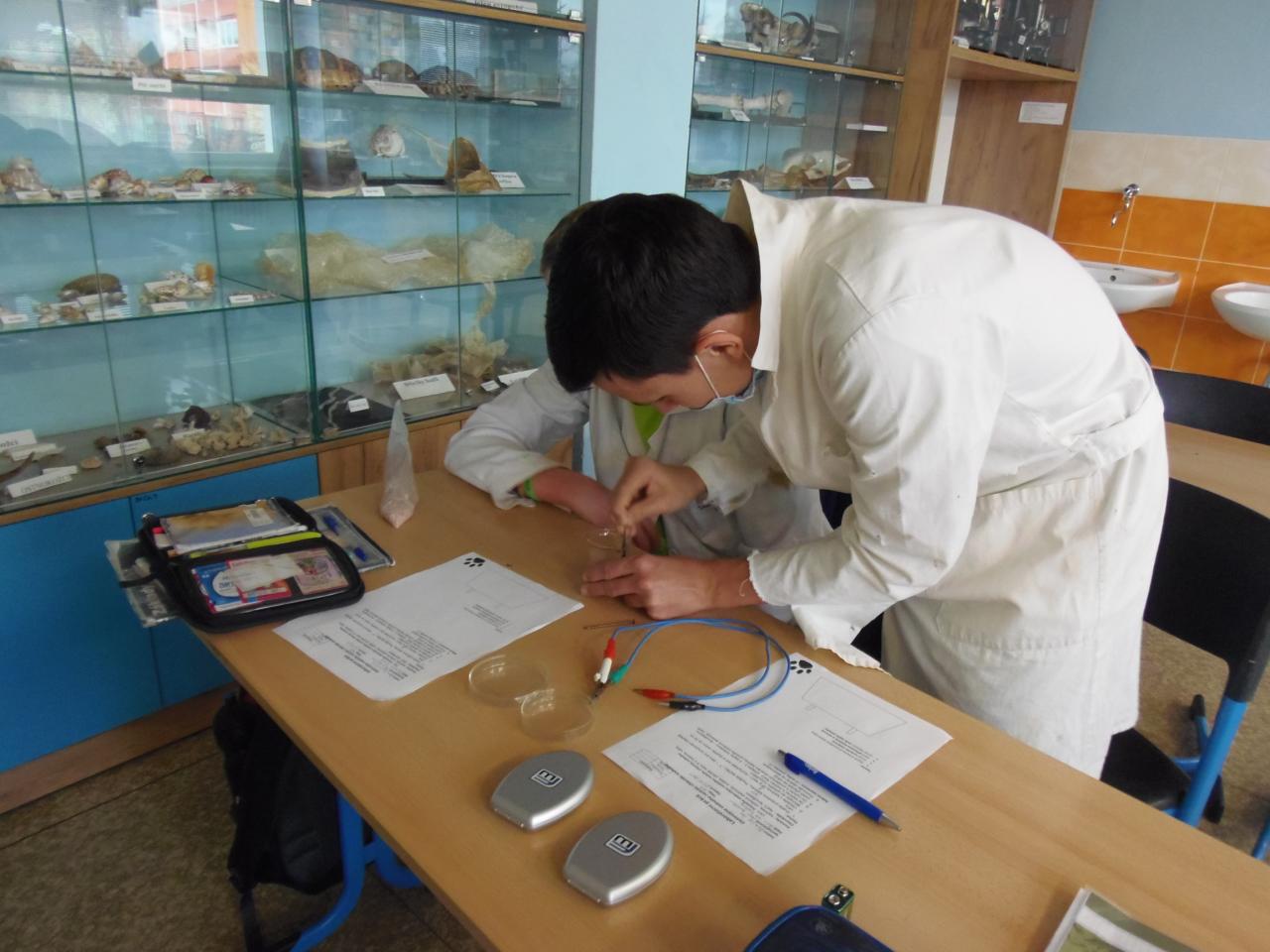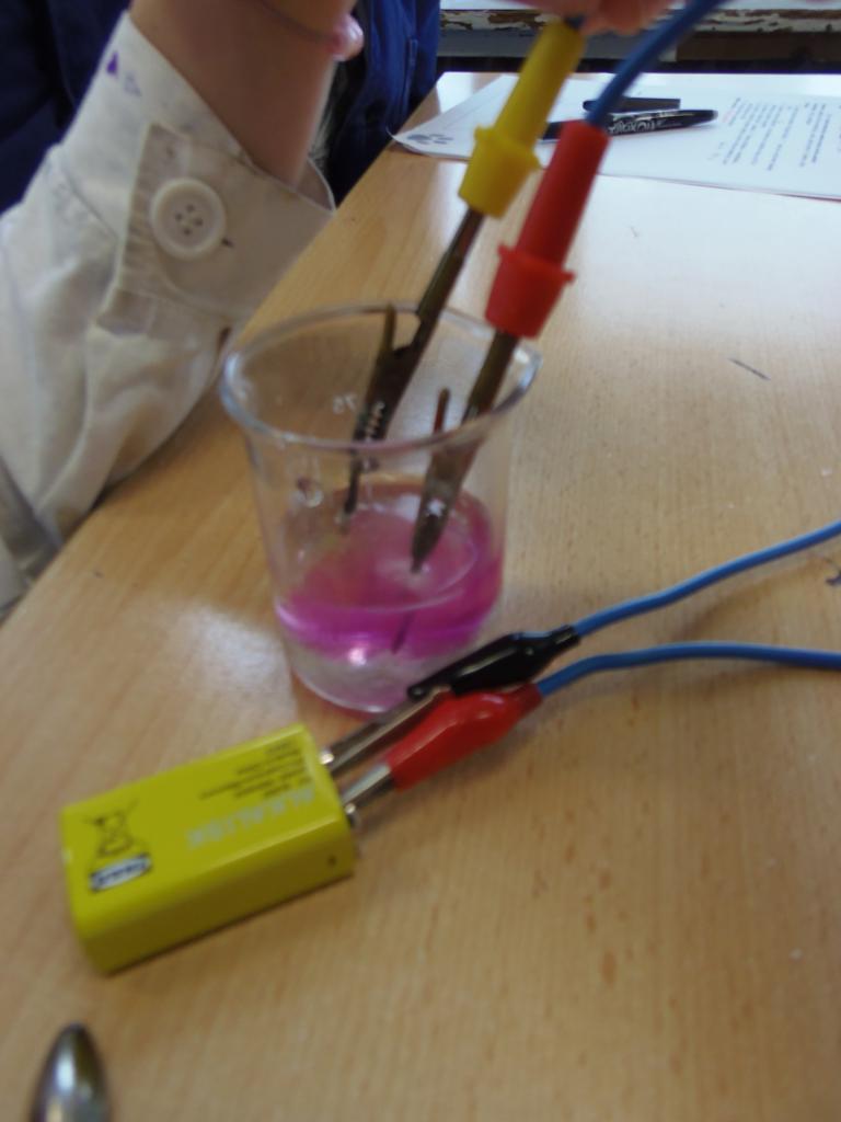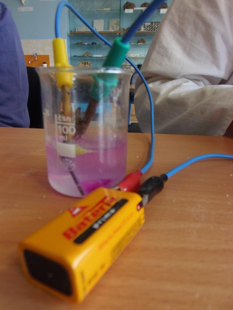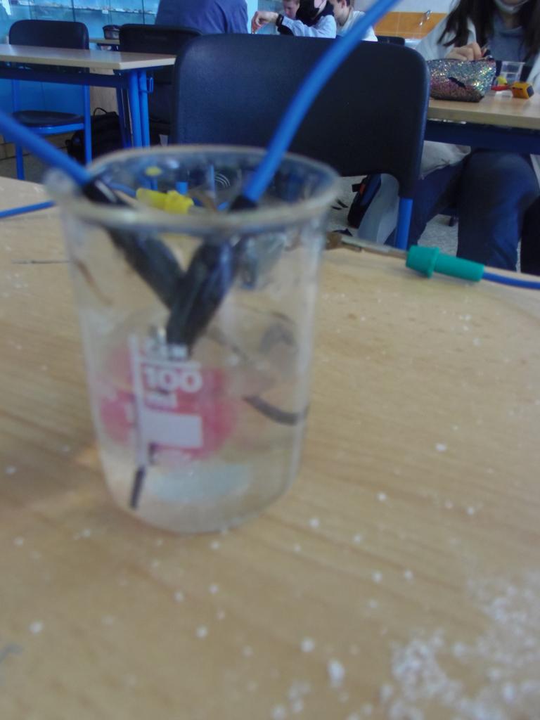 Úkolem práce bylo praktické ověření znalostí z chemie a fyziky. Provedli jsme elektrolýzu roztoku soli a pokoušeli jsme se vymyslet, co se vlastně v kádince děje - které ionty máme a kam putují. Při práci jsme si dali pozor na dodržování bezpečnostních pravidel