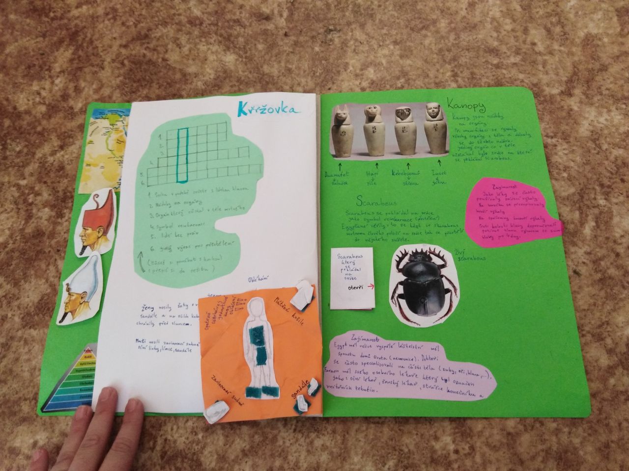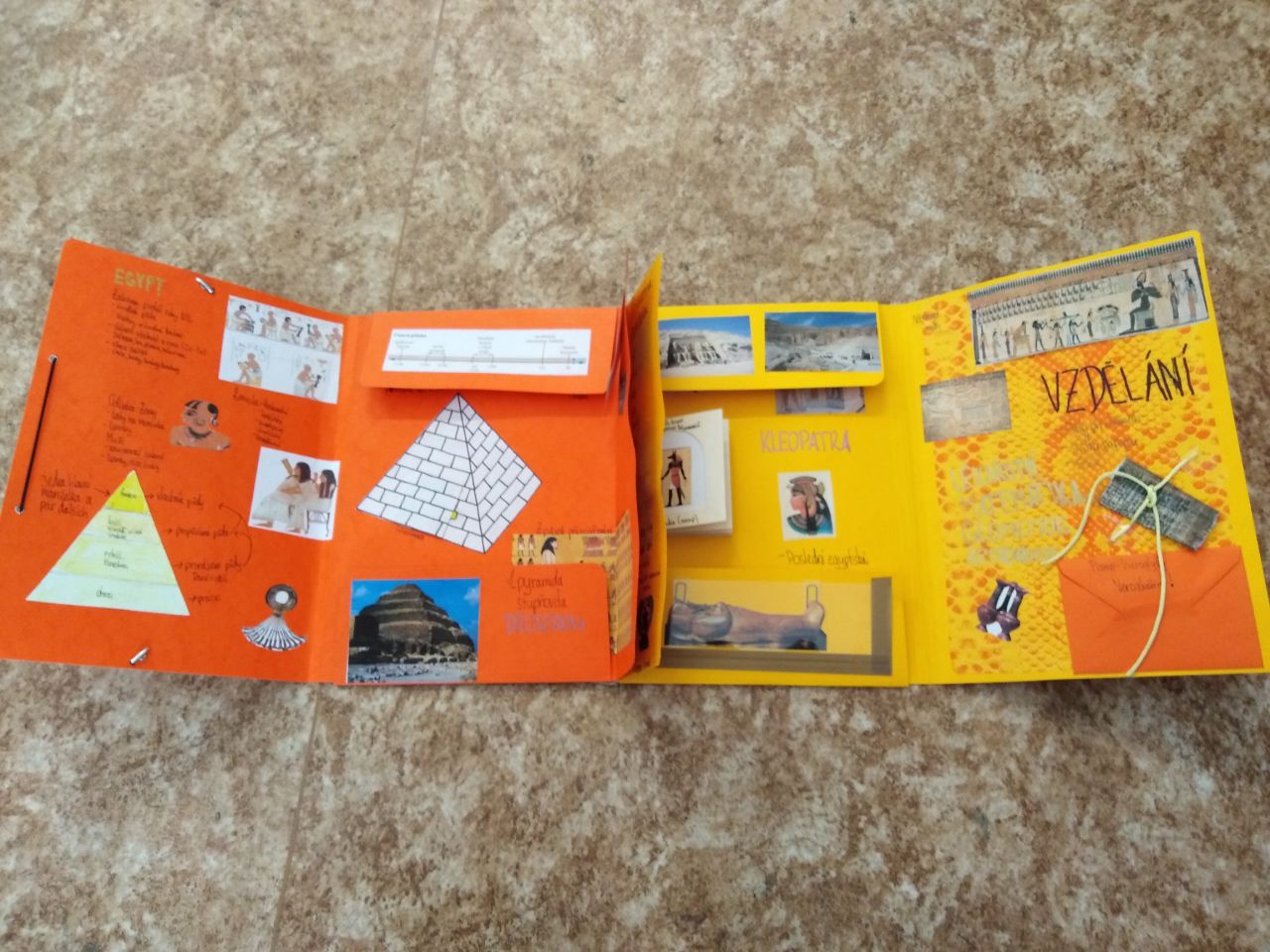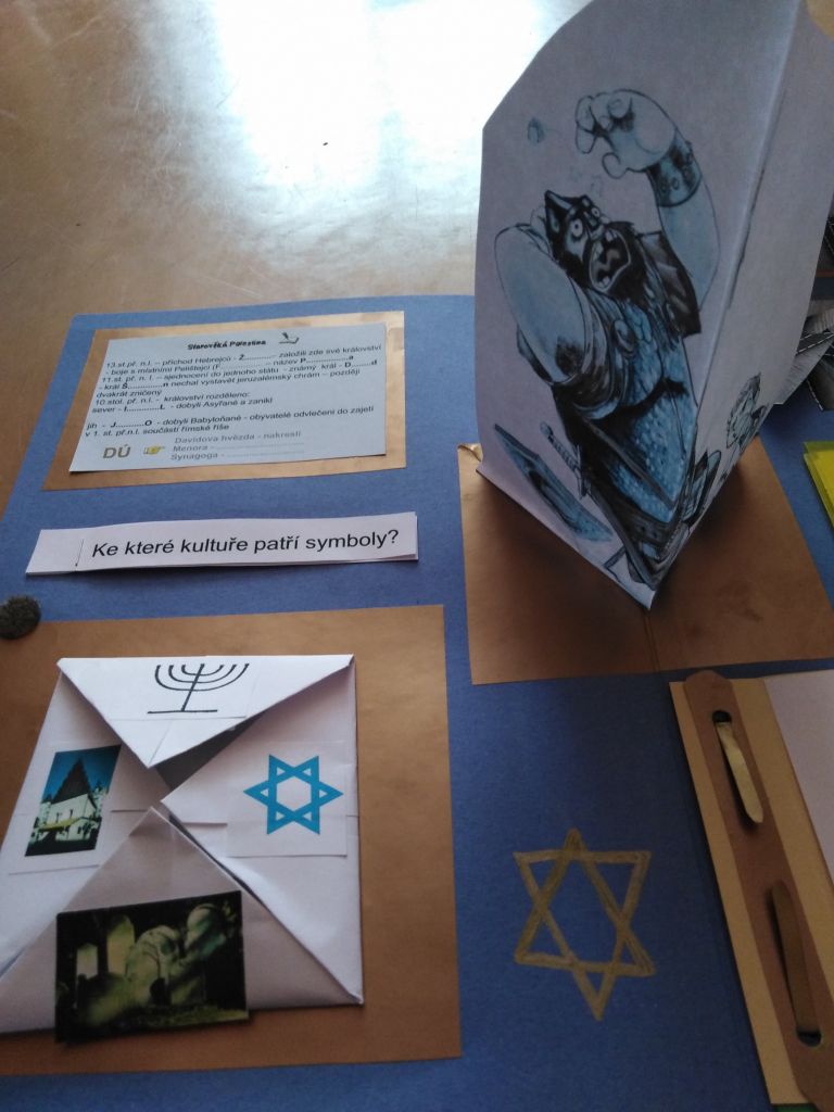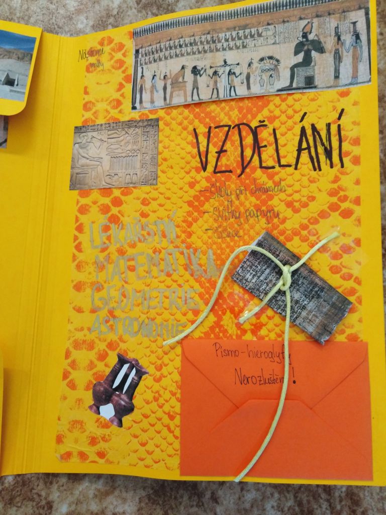 Žáci 6.ročníku si mohli vybrat, zda-li zakončí pololetí závěrečnou písemnou prací ze starověku, a nebo se pustí do výroby lapbooku. Většina z nich se rozhodla pro výrobu lapbooku - interaktivní knížky.