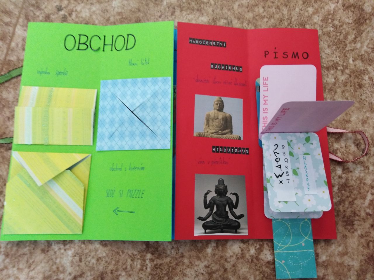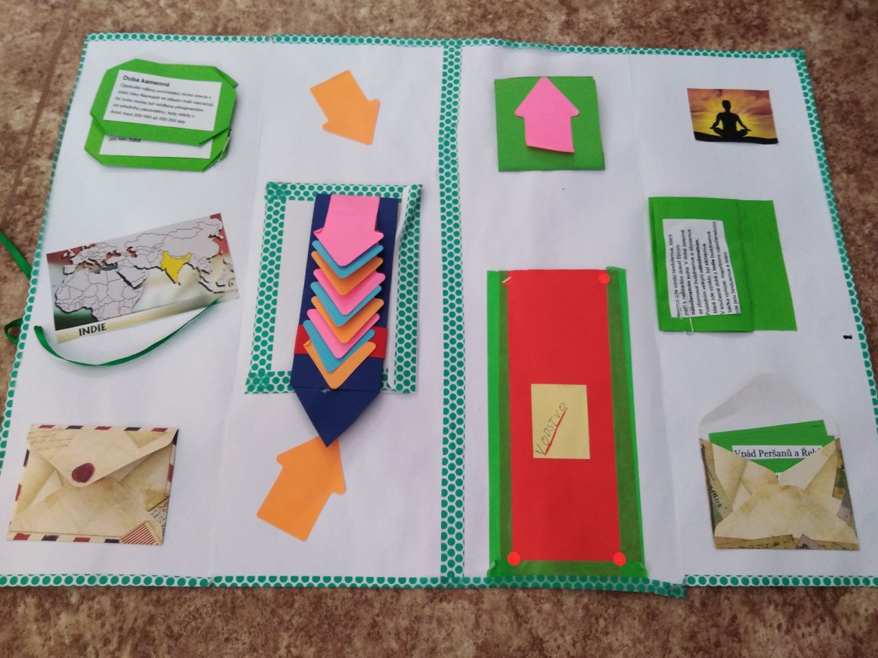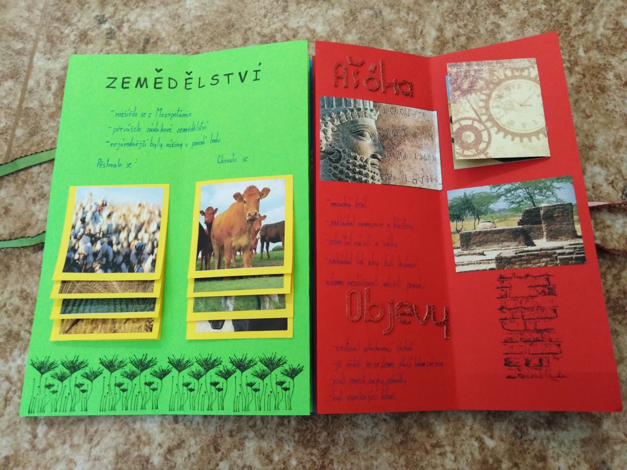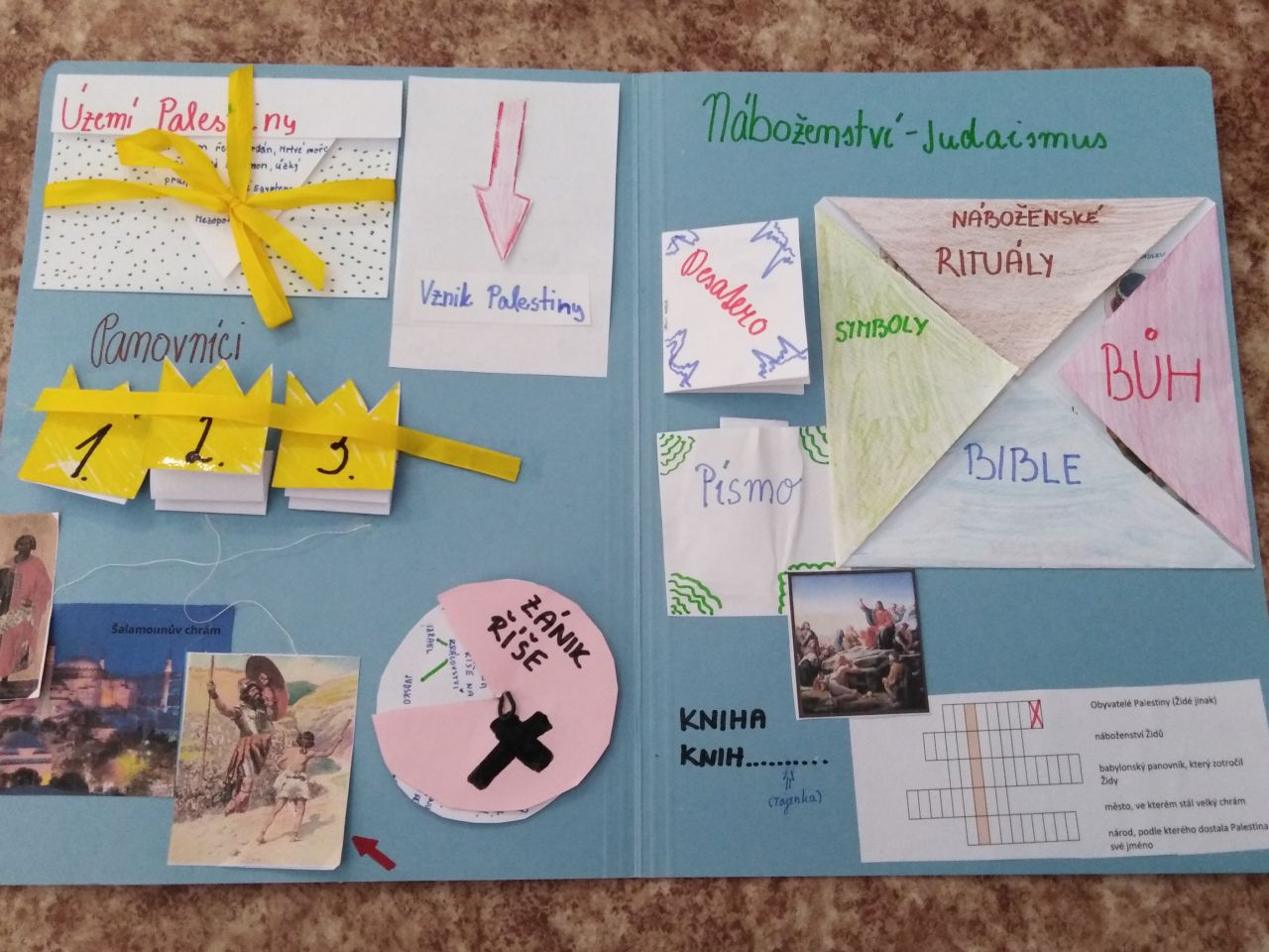 Žáci 6.ročníku si mohli vybrat, zda-li zakončí pololetí závěrečnou písemnou prací ze starověku, a nebo se pustí do výroby lapbooku. Většina z nich se rozhodla pro výrobu lapbooku - interaktivní knížky.