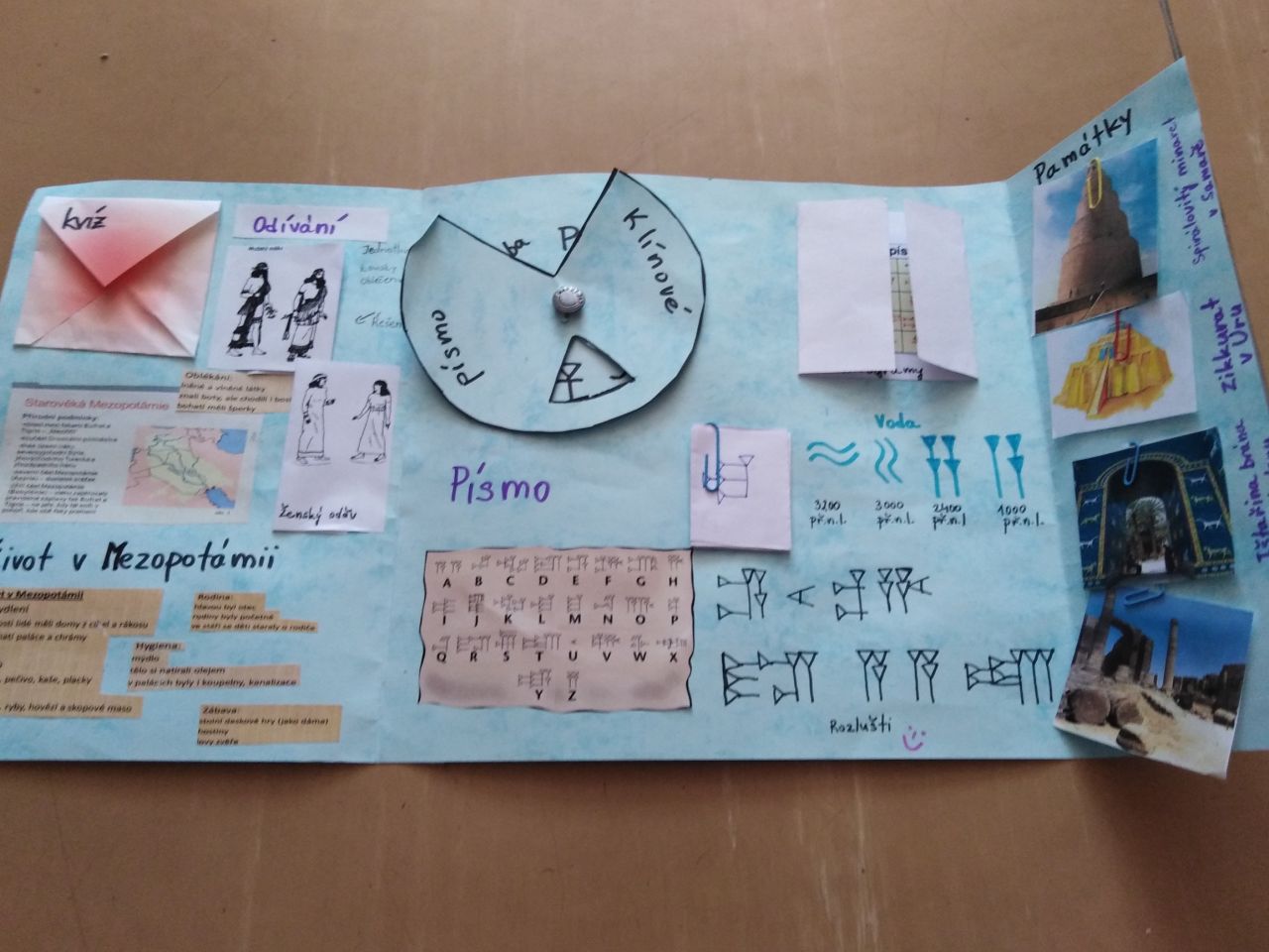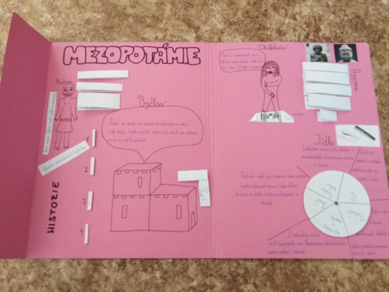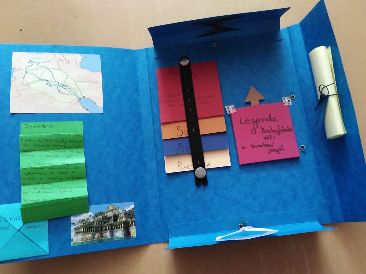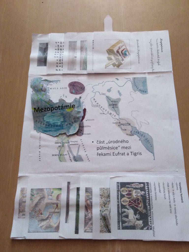 Z obyčejných desek dokázali šesťáci vytvořit opravdu nádherné práce, doslova napěchované informacemi o starověké Mezopotámii, Palestině, Egyptě, Indii, nebo Číně. Lapbooky jsou plné různých odkrývacích okének, puzzlíků, pexes, křížovek, můžete si dokonce zkusit obléknout starověké obyvatele nebo okusit pravý čínský čaj.