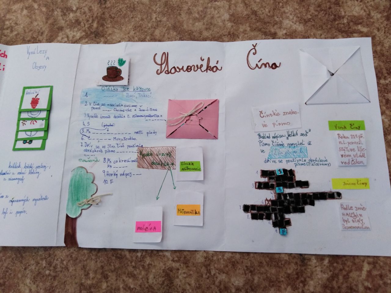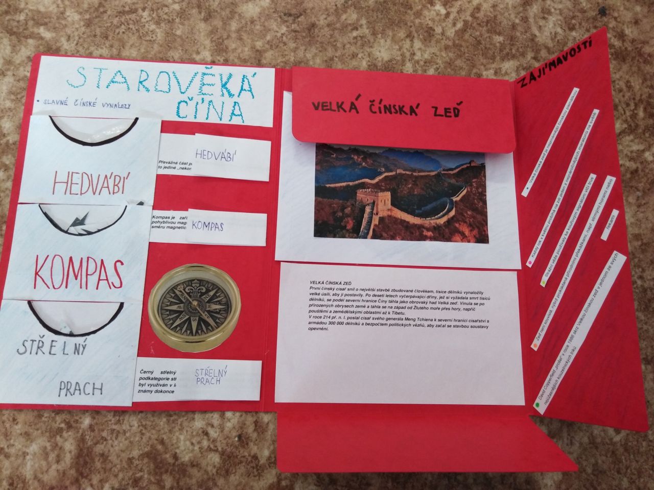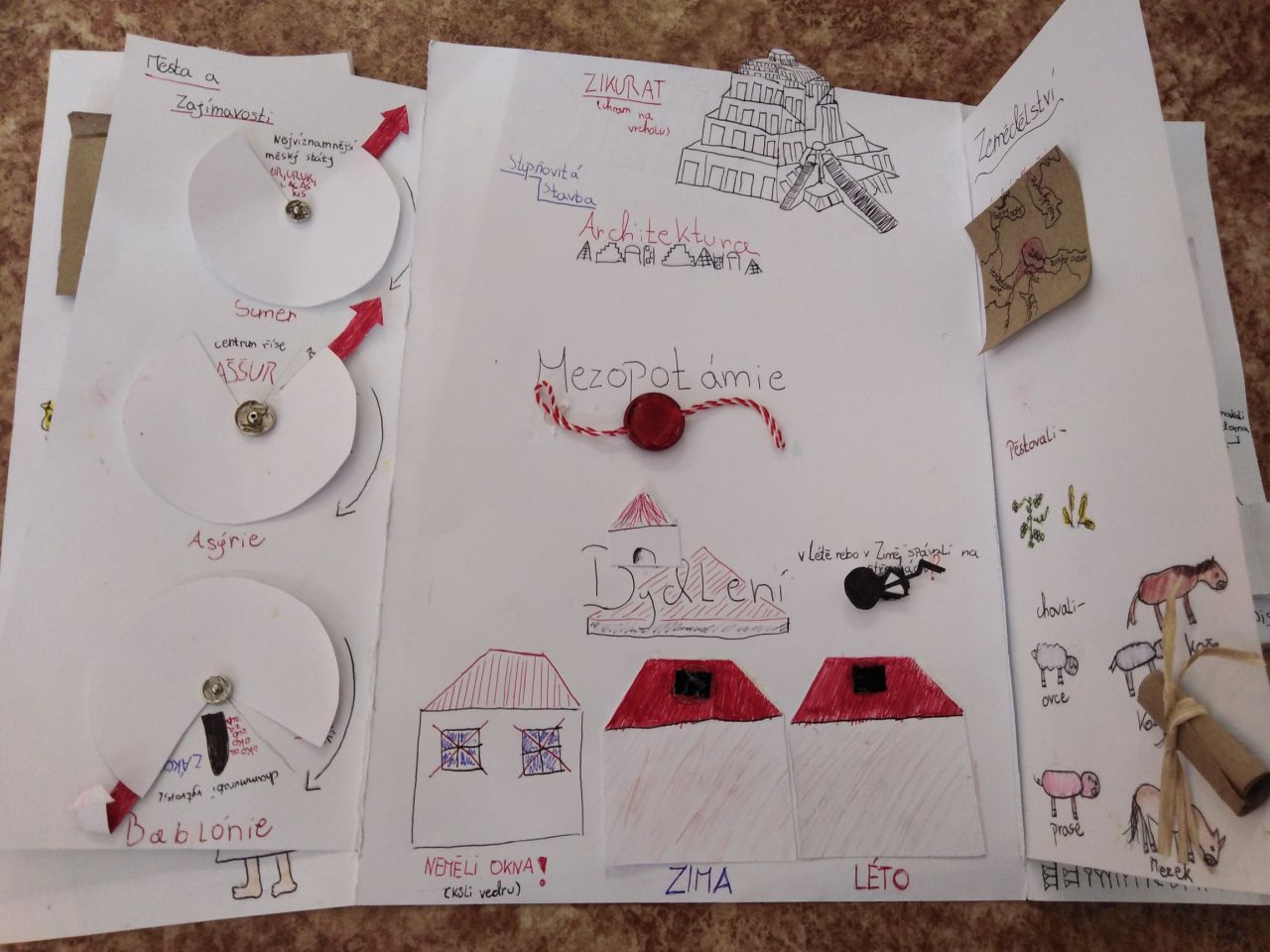Z obyčejných desek dokázali šesťáci vytvořit opravdu nádherné práce, doslova napěchované informacemi o starověké Mezopotámii, Palestině, Egyptě, Indii, nebo Číně. Lapbooky jsou plné různých odkrývacích okének, puzzlíků, pexes, křížovek, můžete si dokonce zkusit obléknout starověké obyvatele nebo okusit pravý čínský čaj.