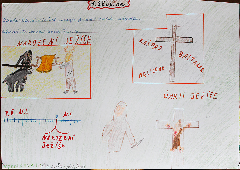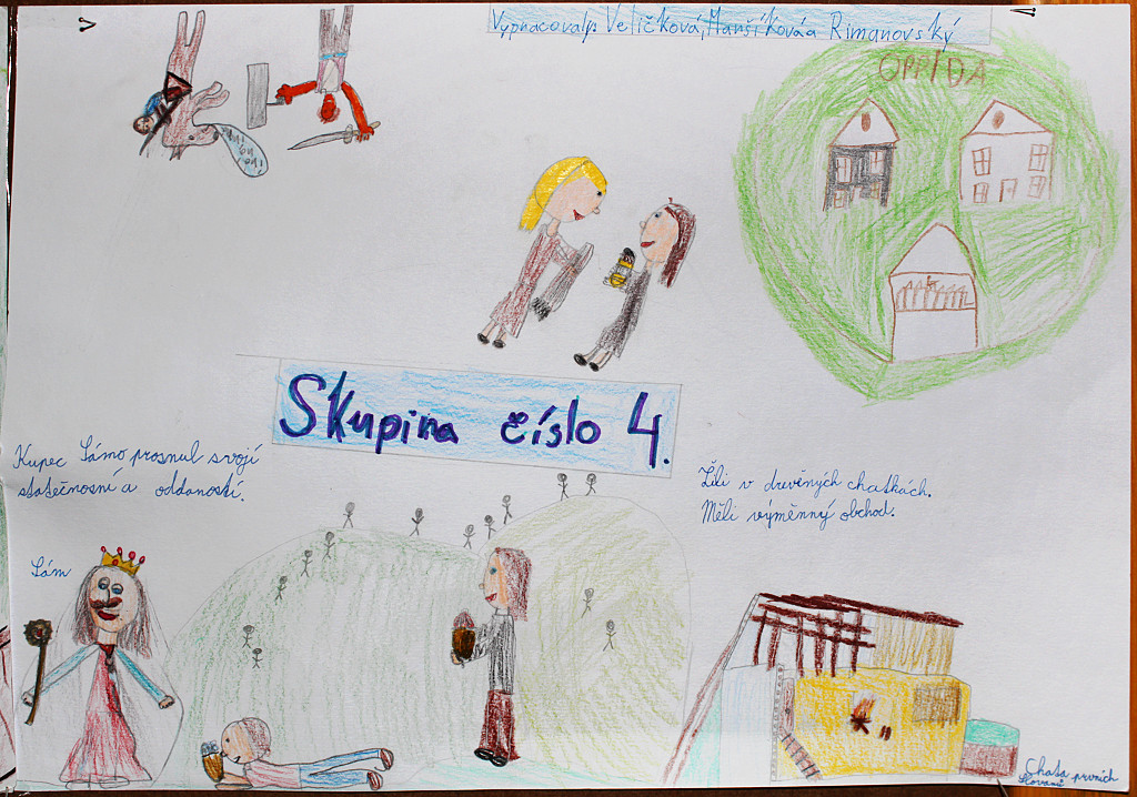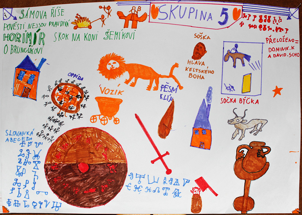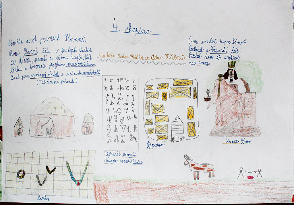 V hodinách vlastivědy jsme probírali příchod Slovanů na naše území. Vyrobili jsme ve skupinách leporela o životě v této době. Práce jsme vystavili v prostorách školy.