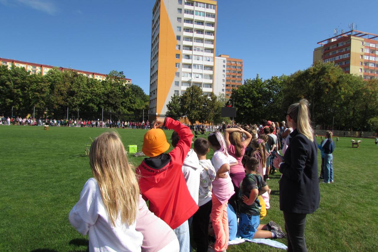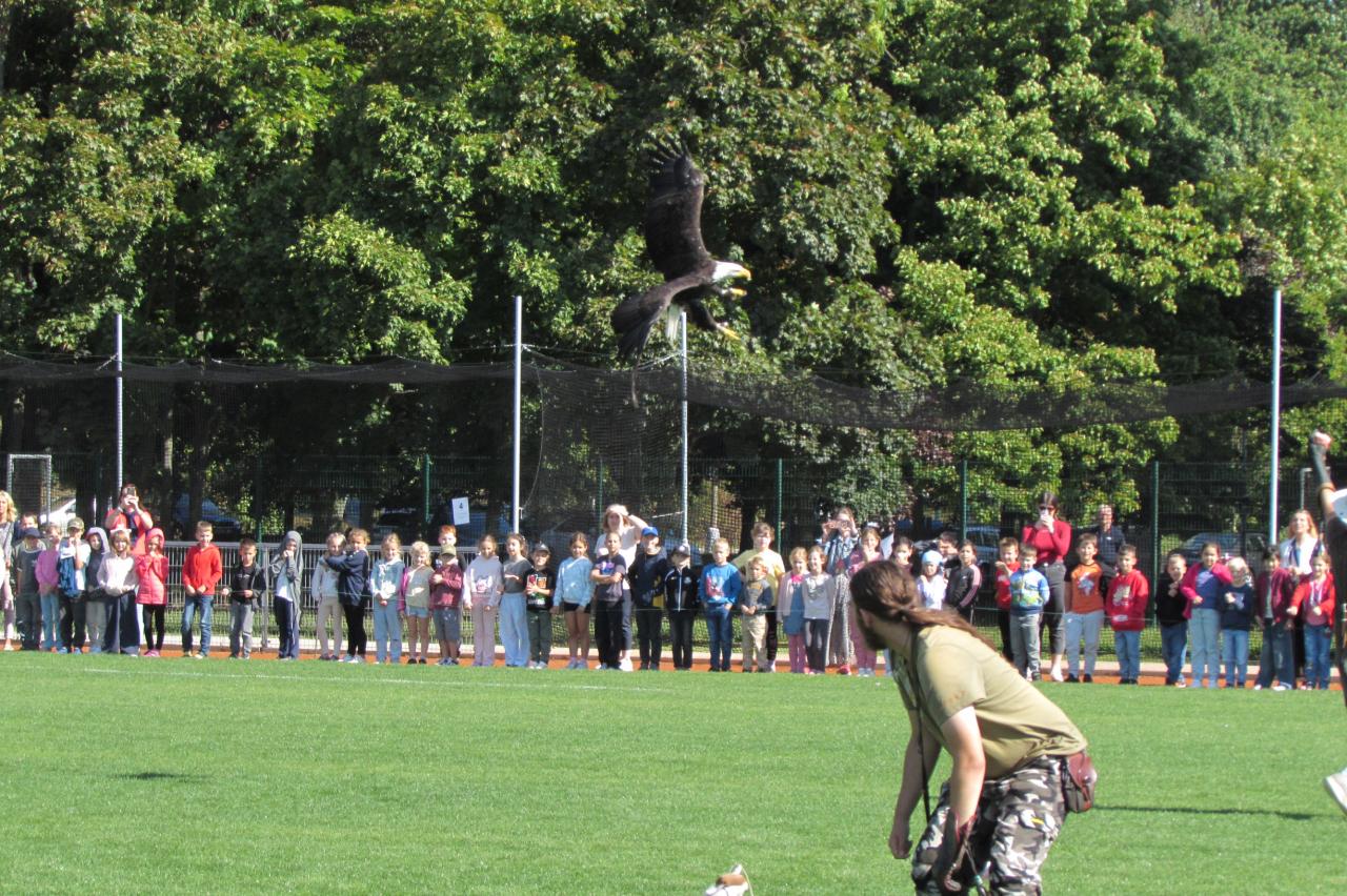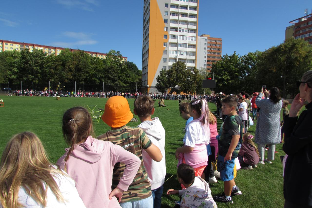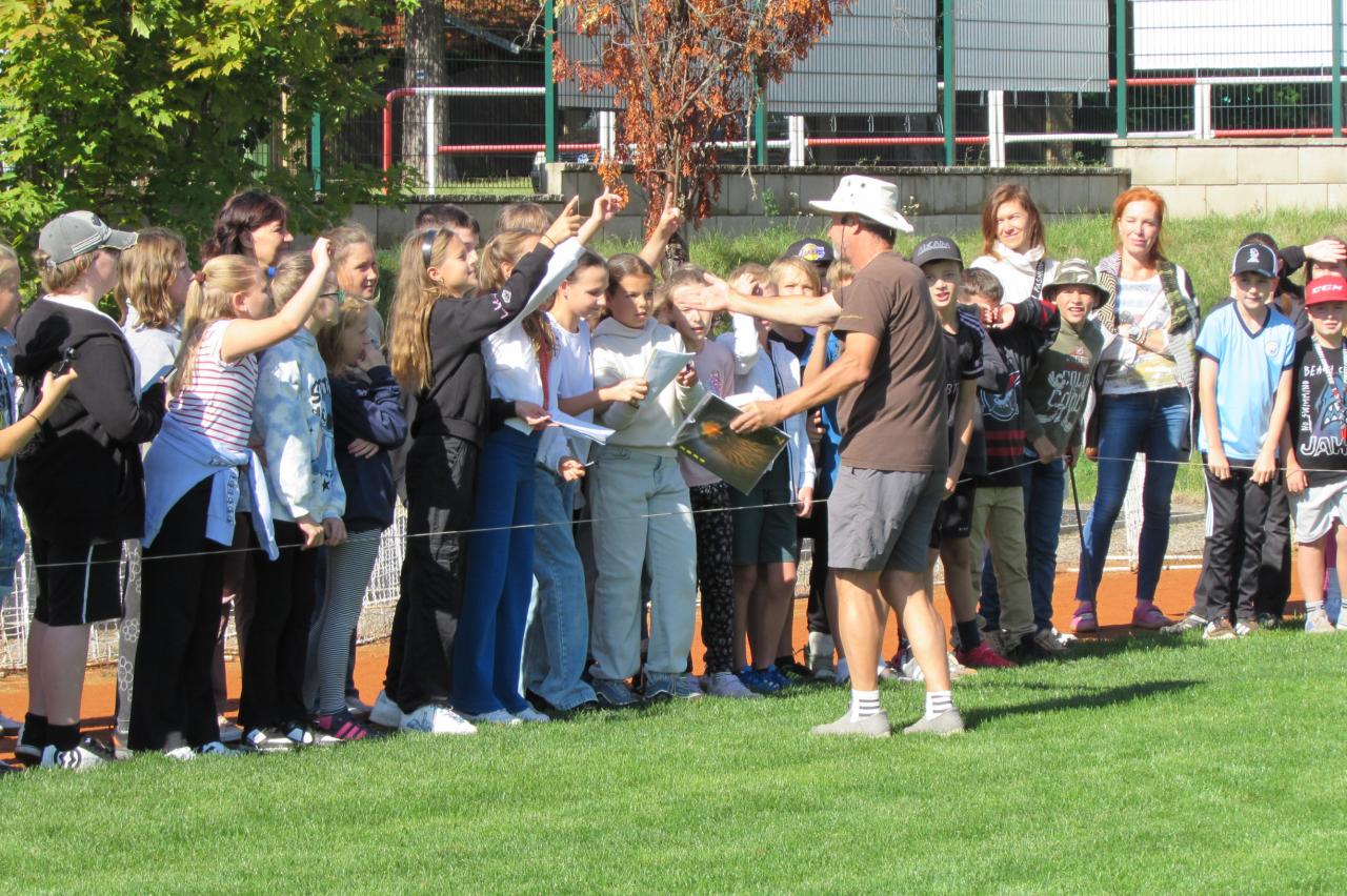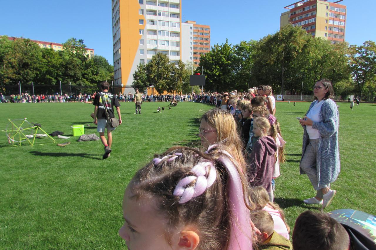 Pro žáky 2.–6. ročníku jsme dnes připravili krásnou akci, která se odehrála na hřišti za školou. Zavítala k nám společnost Zayferus, jež se specializuje na chov a ochranu dravých ptáků, a připravila pro děti jedinečný program plný poznání i zážitků.