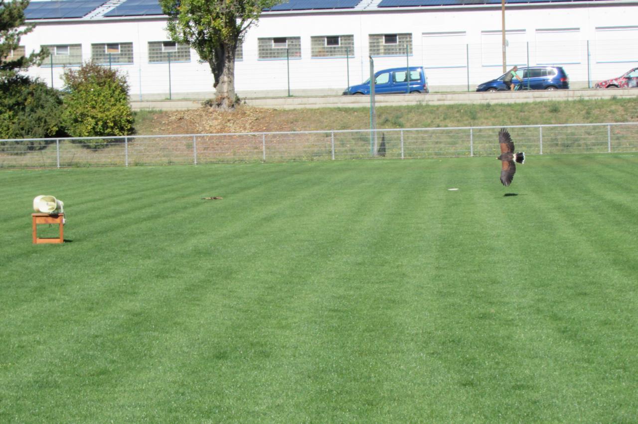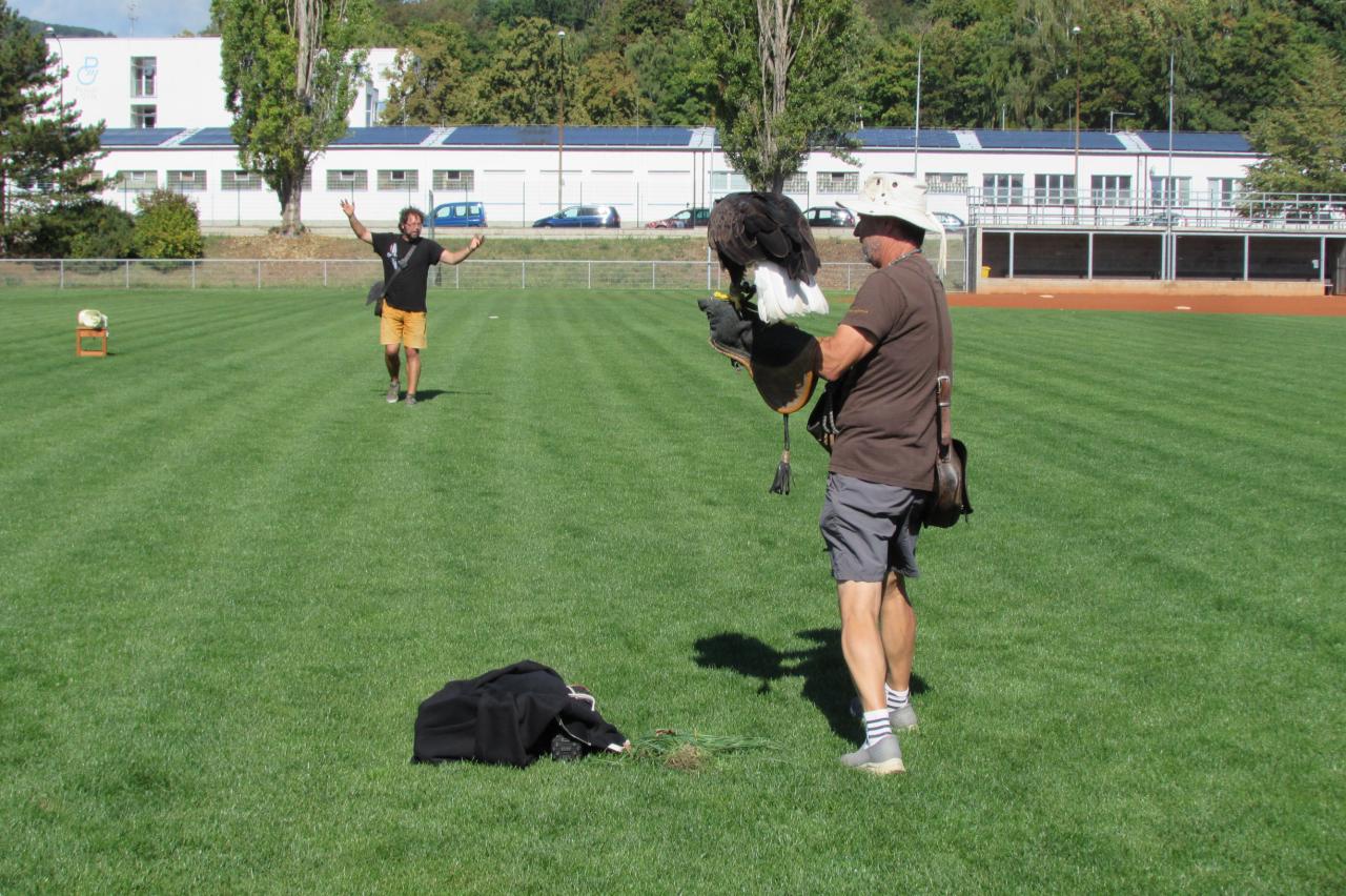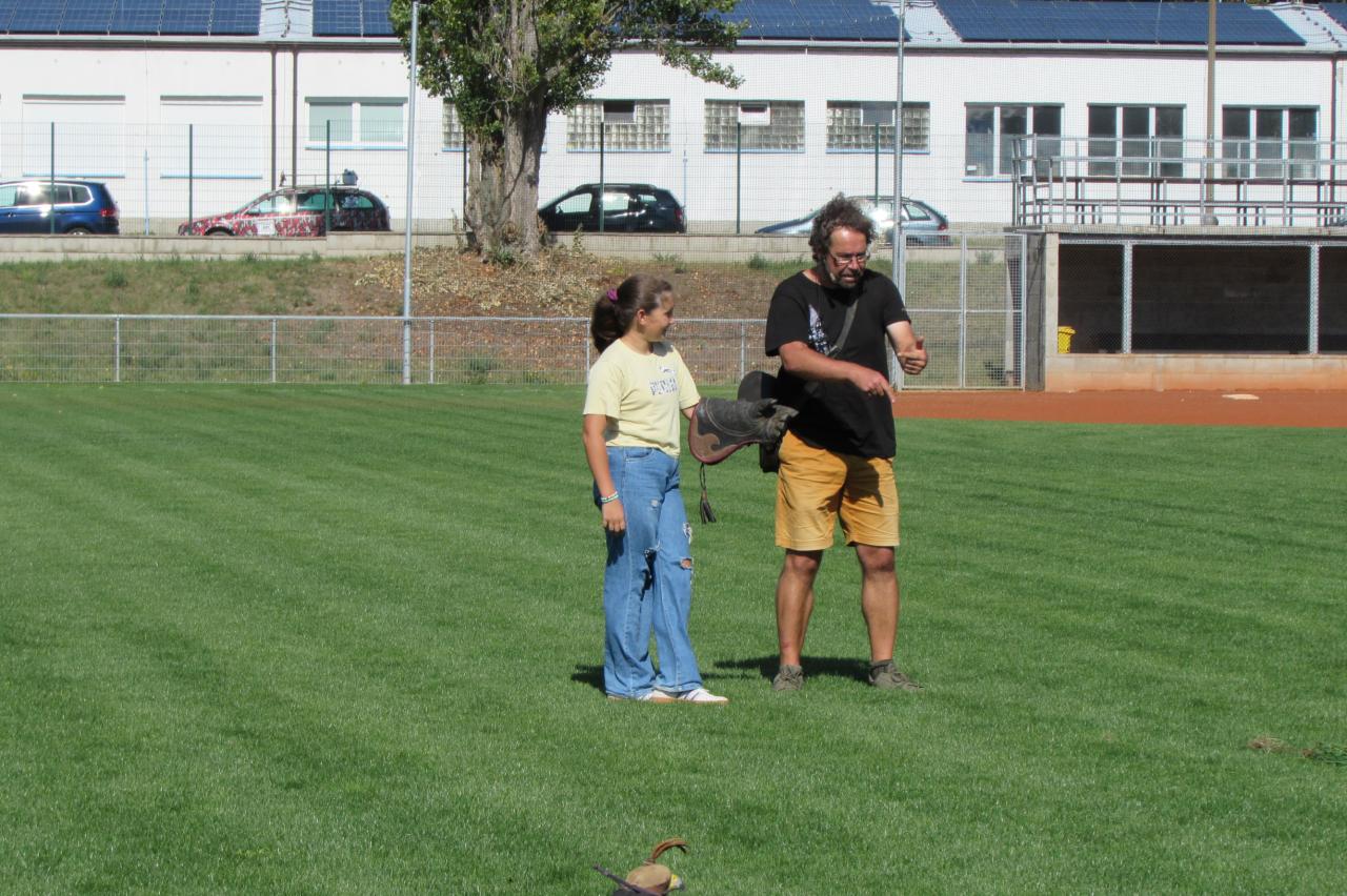 🦉 Letové ukázky – síla a elegance v pohybu– závěr patřil samotným dravcům. Sokolníci předvedli jejich ladný let, přesné přistávání i způsob lovu. Děti s úžasem sledovaly, jak majestátně a obratně se ptáci pohybují ve vzduchu- bylo to jako sledovat živý dokument přímo před očima.