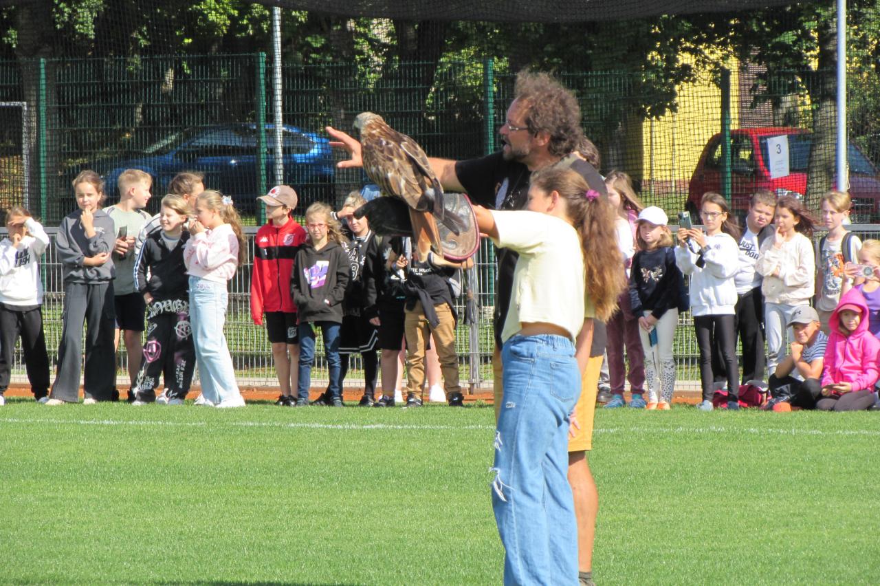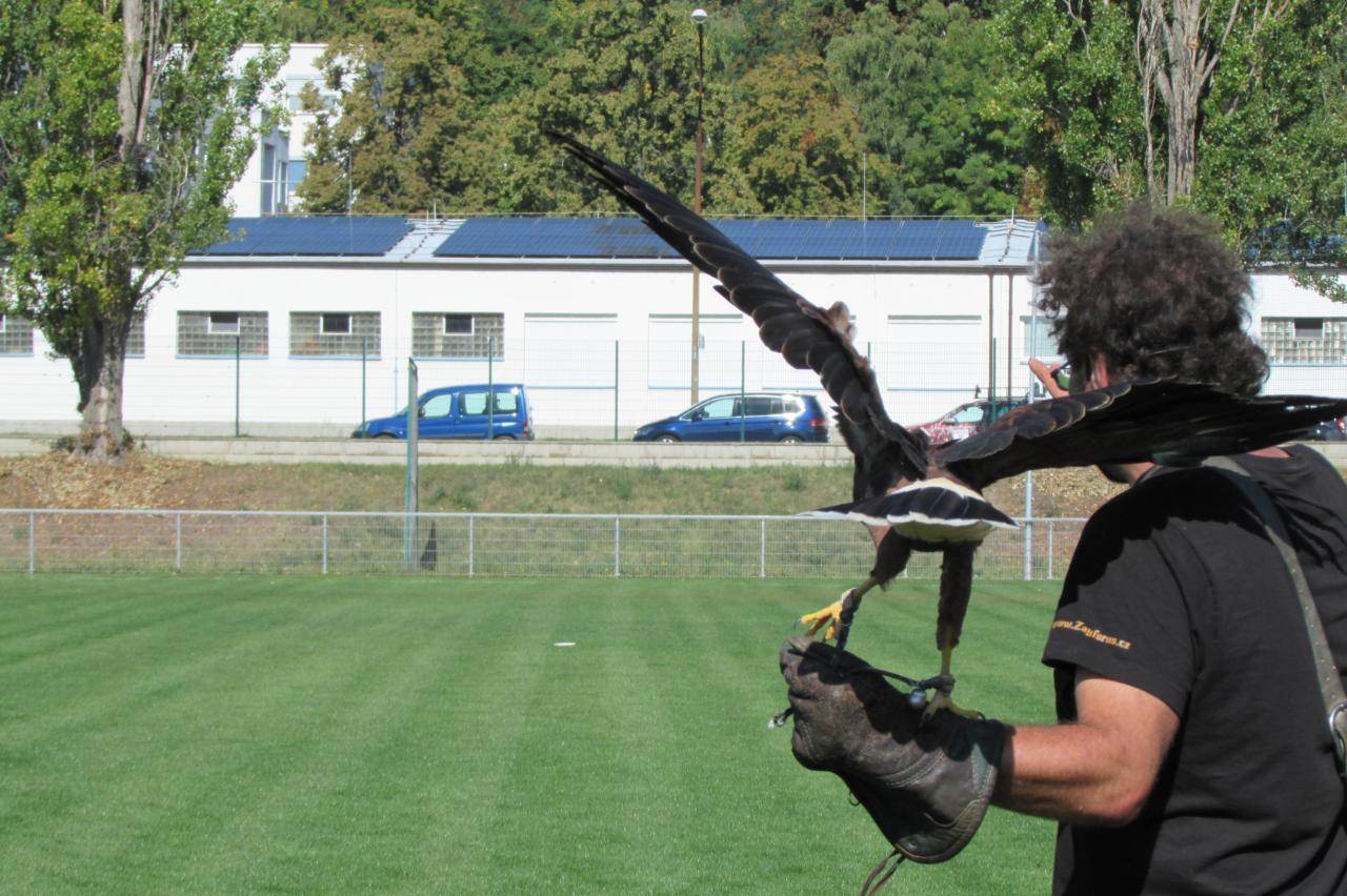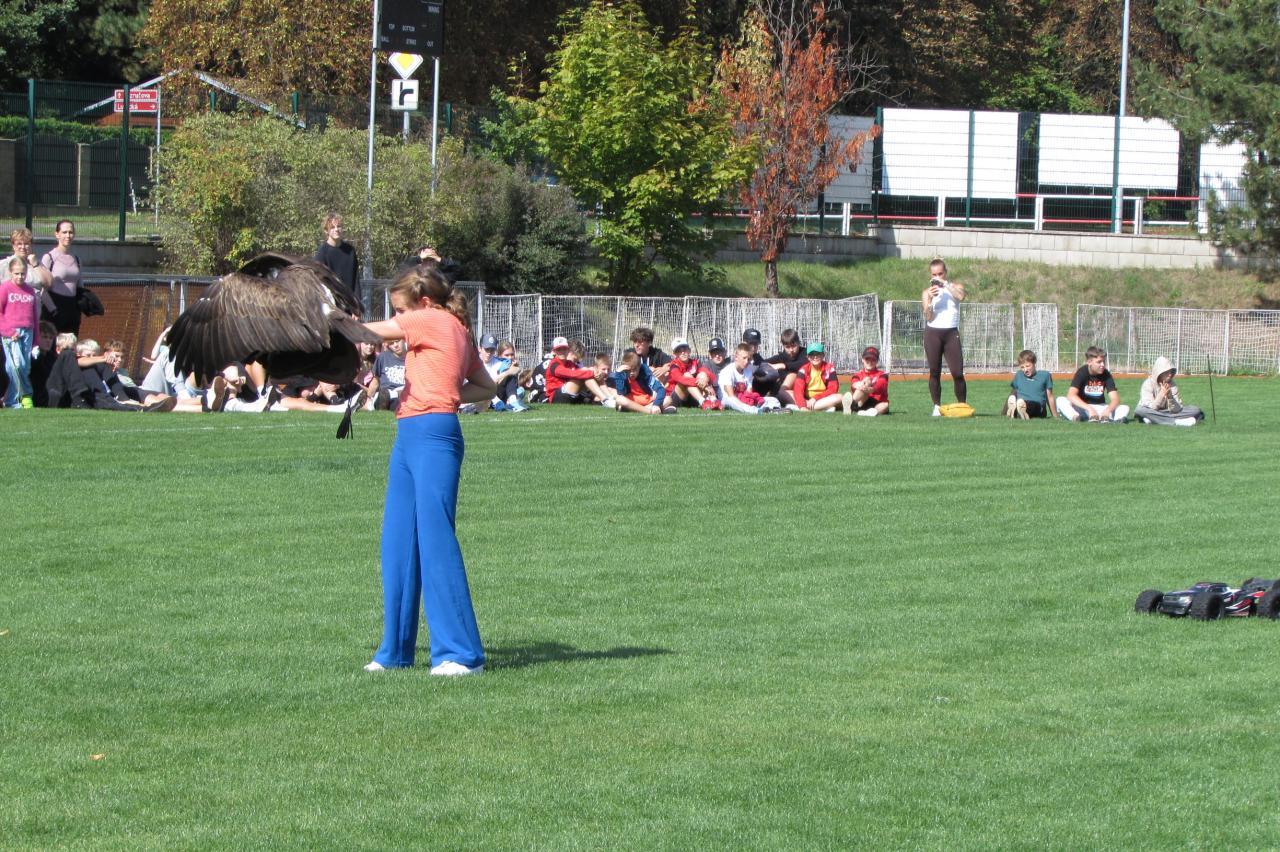 🦅 Prohlídka dravců – děti si mohly zblízka prohlédnout orly, sokoly, poštolky, sovy i další dravce a od zkušených sokolníků se dozvěděly mnoho zajímavých informací o jejich životě, lovu i ochraně