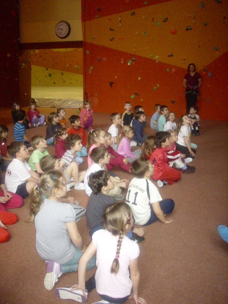 Děti si nejprve vyslechly několik informací o sportovním vybavení lezců