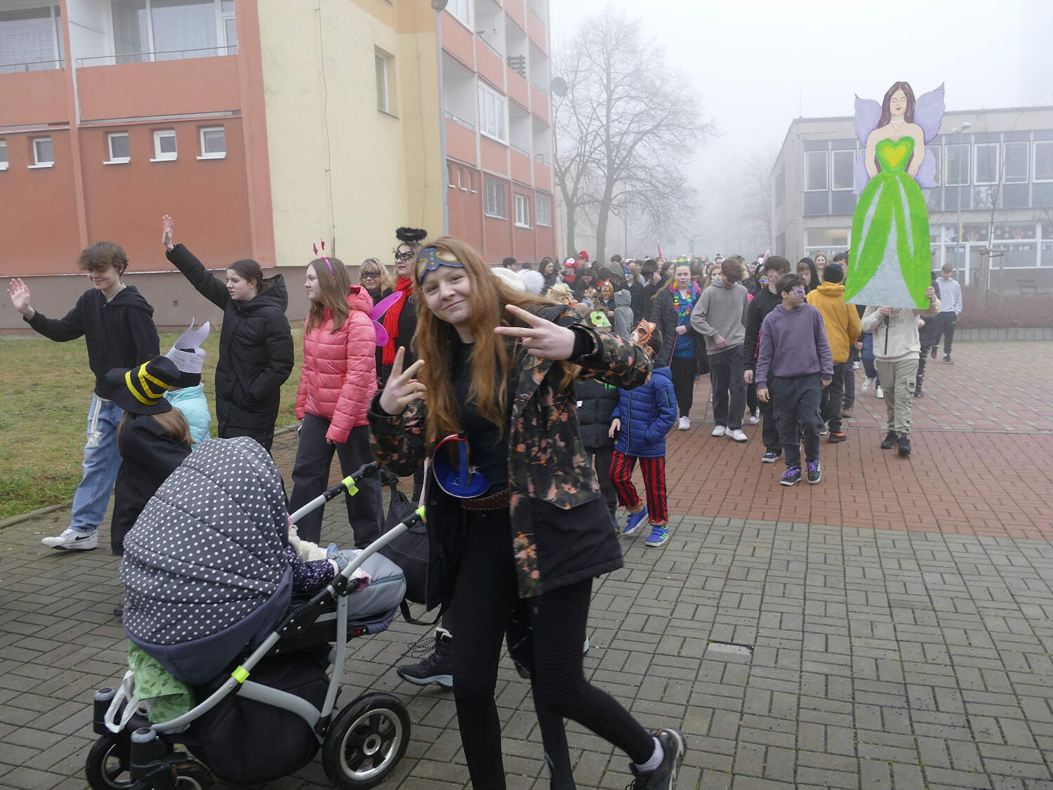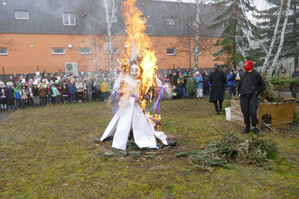 V pátek 16.2.2024 jsme si užili celá škola, ale i veřejnost Masopust na Hey. Naši žáci přípravu vůbec nepodcenili a do školy už přišli v masopustních maskách, které jim velmi slušely. V ranních hodinách si deváté ročníky potrénovaly ve velké tělocvičně polku a valčík, který na Masopustu nesmí chybět. Ostatní se ve třídách pomalu připravovali na masopustní kvíz. Během dopoledne třídy na prvním a druhém stupni navštívila porota, která měla za úkol ohodnotit masky. Samozřejmě nesměla chybět živá hudba, řezník s masovými pochutinami a stoly zaplněné sladkými dobrotami. Školou se nesla živá hudba v podání našich muzikantů, kteří to vzali pěkně od podlahy a vyzvali naše žáky ven. Tam jsme se pozvolna pustili do již zmiňované polky a valčíku. Nejen deváté ročníky, ale i učitelé vyzvali i ty nejmenší k tanci a společně jsme si zatančili. A samozřejmě k Masopustu patří průvod, který jsme nemohli vynechat. Byl to dlouhý štrůdl našich žáků, učitelů a veřejnosti plných masek. Společně s živou muzikou jsme se prošli sídlištěm a zakončili jsme průvod v naší školní zahradě, kde na nás čekala strašidelně krásná Morana, kterou jsme podpálili a společně s jejím upálením zahnali vše špatné a otevřeli pomyslné dveře jaru i všemu krásnému a dobrému.