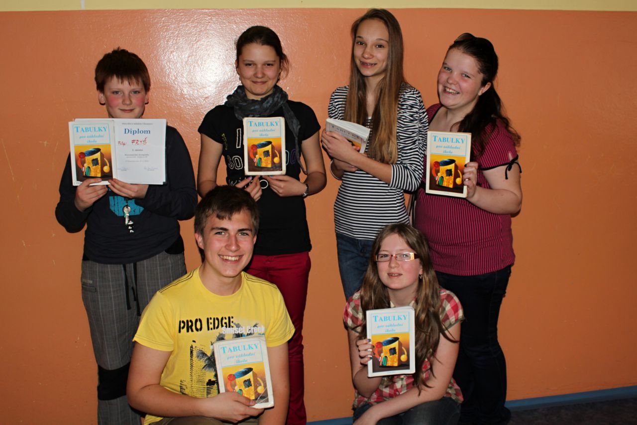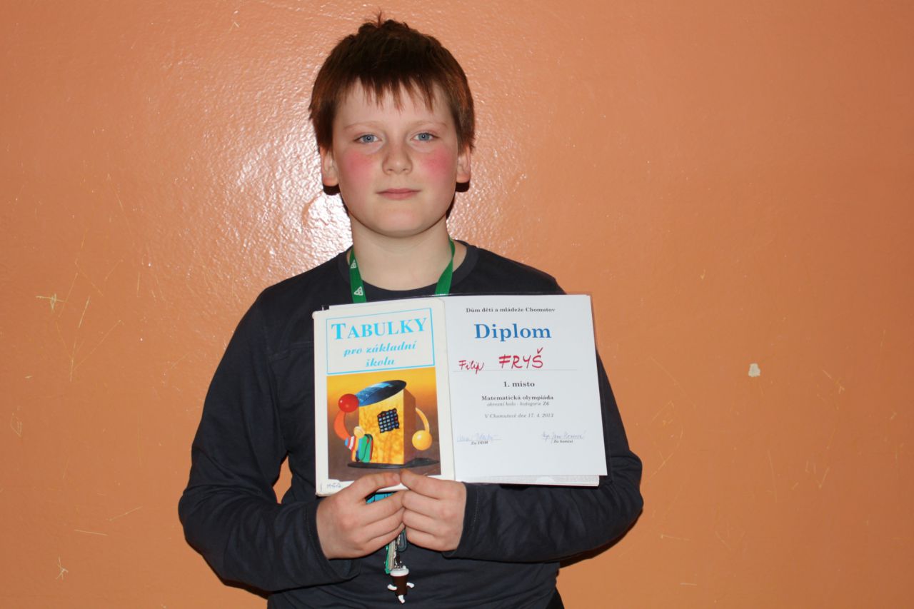 Naši nejlepší matematikové šestého až osmého ročníku se zúčastnili okresního kola matematické olympiády pořádané DDM Chomutov výjimečně v jídelně naší školy. Naši školu reprezentovali žáci Filip Fryš a Tereza Černá za šesté ročníky, Kateřina Fulierová a Petra Toušková za sedmé ročníky, Filip Šlampa a Kateřina Moravcová.