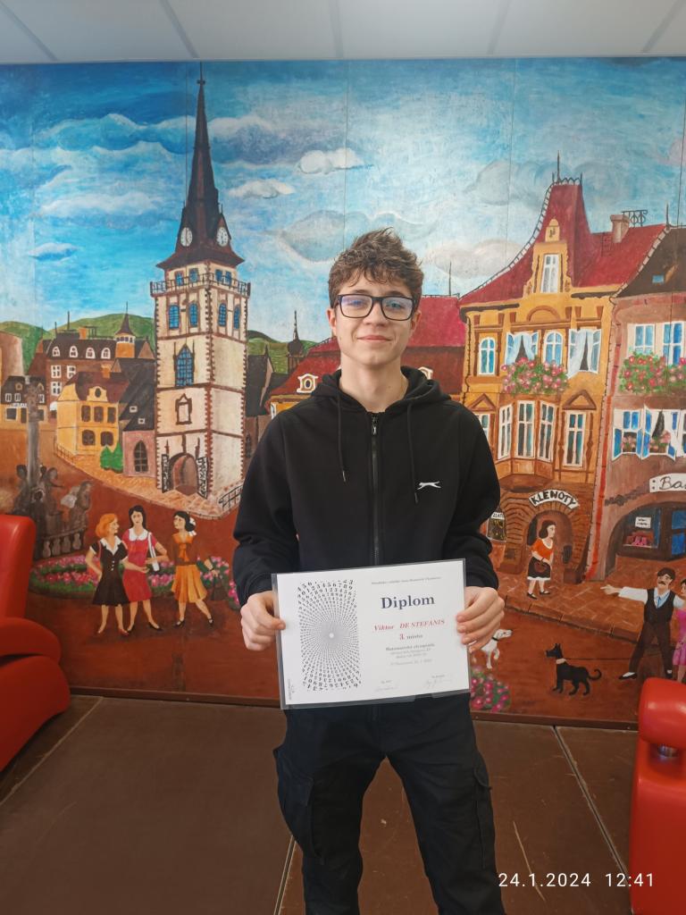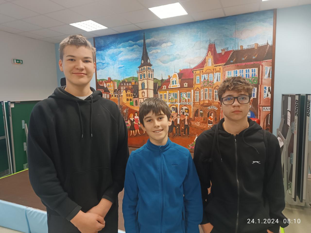 Deváťáci měli má své úlohy čtyři hodiny. Nejlépe se s nimi popasoval Viktor De Stefanis z 9.A, který obsadil 3. místo a Jirka Forman z 9.B zaostal jen pár body za medailovými pozicemi a skončil pátý.