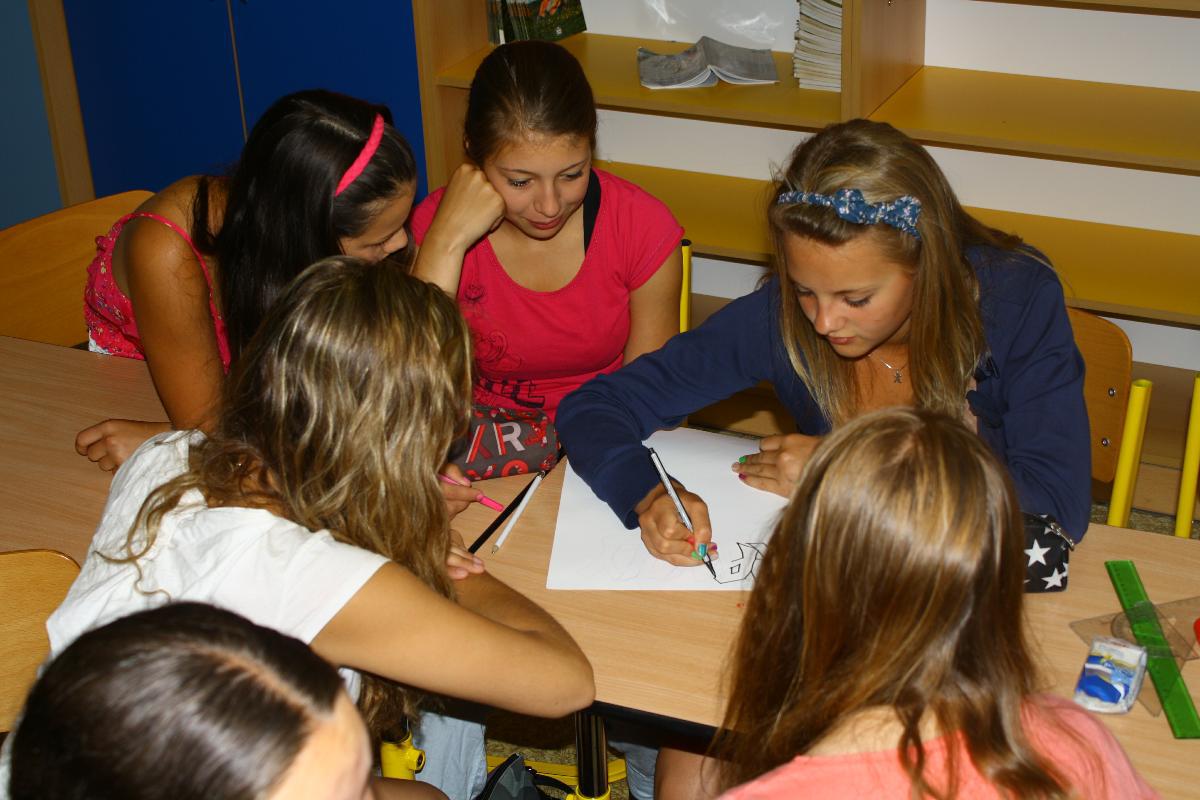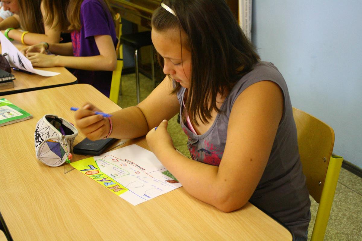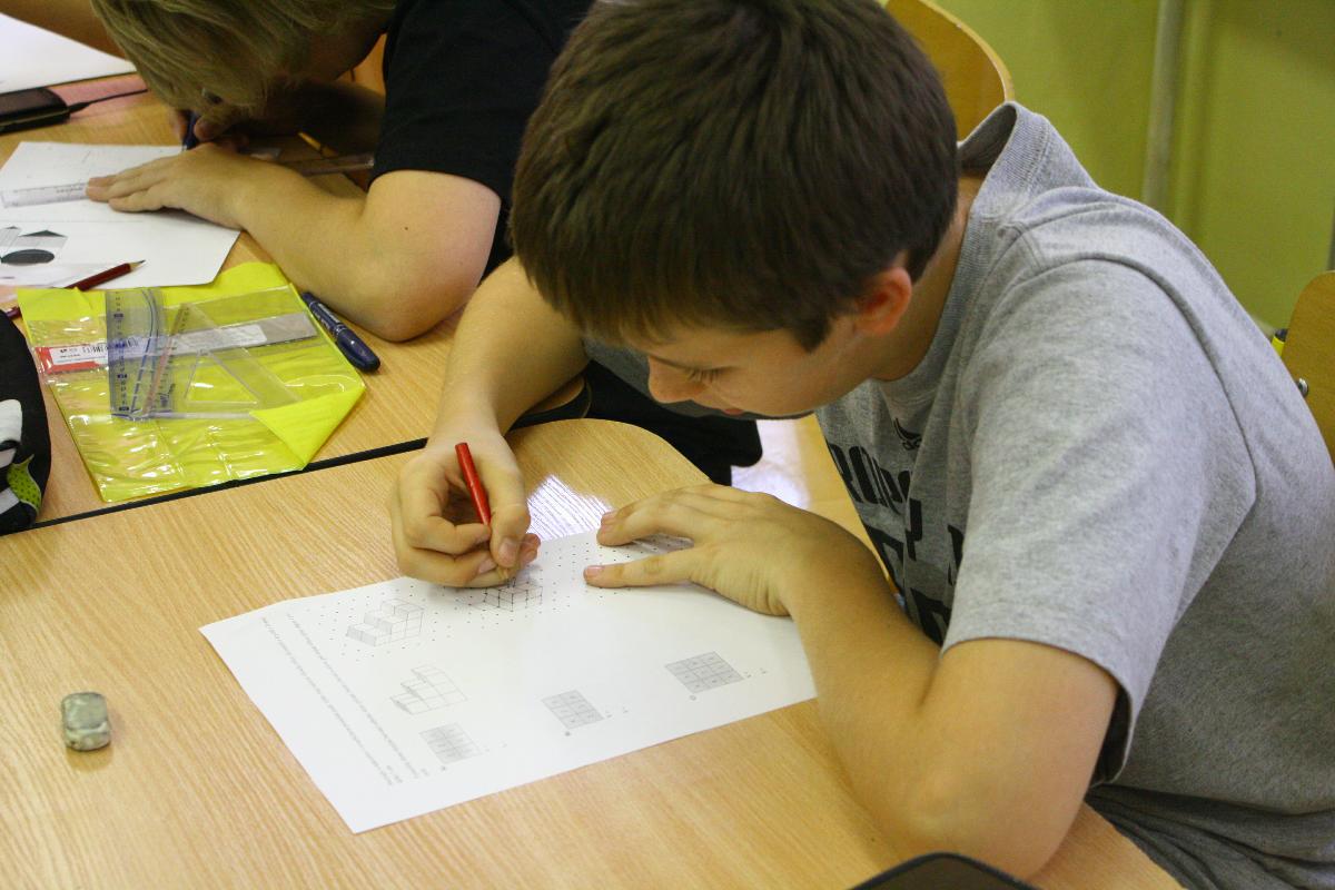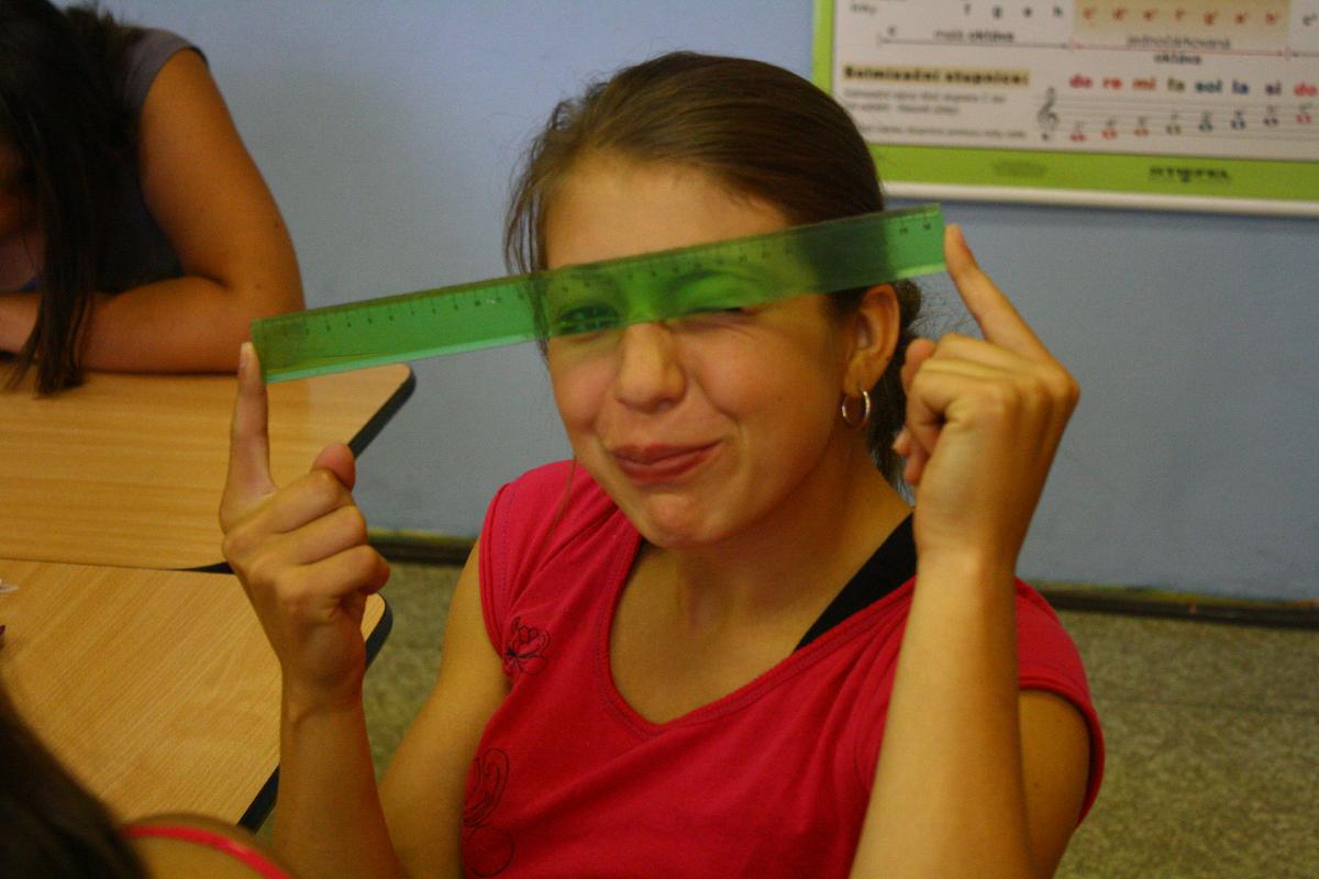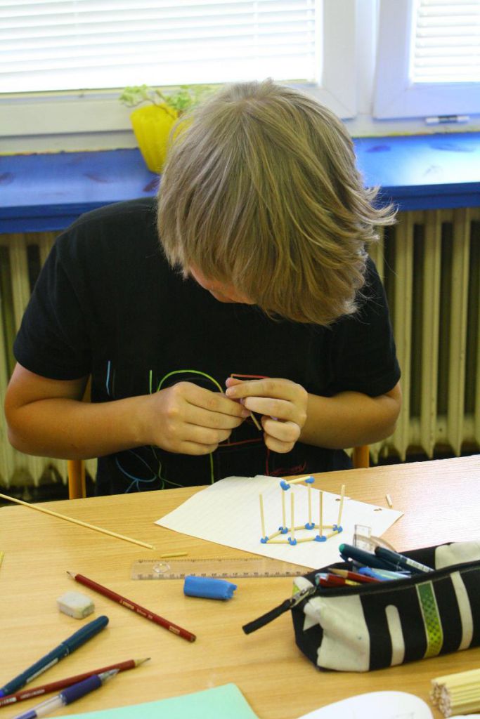Žáci sedmých ročníků získavají informace o hranolech ve skupinové práci. Vytvářejí plakáty, modely hranolů a hledají hranoly v okolí školy.