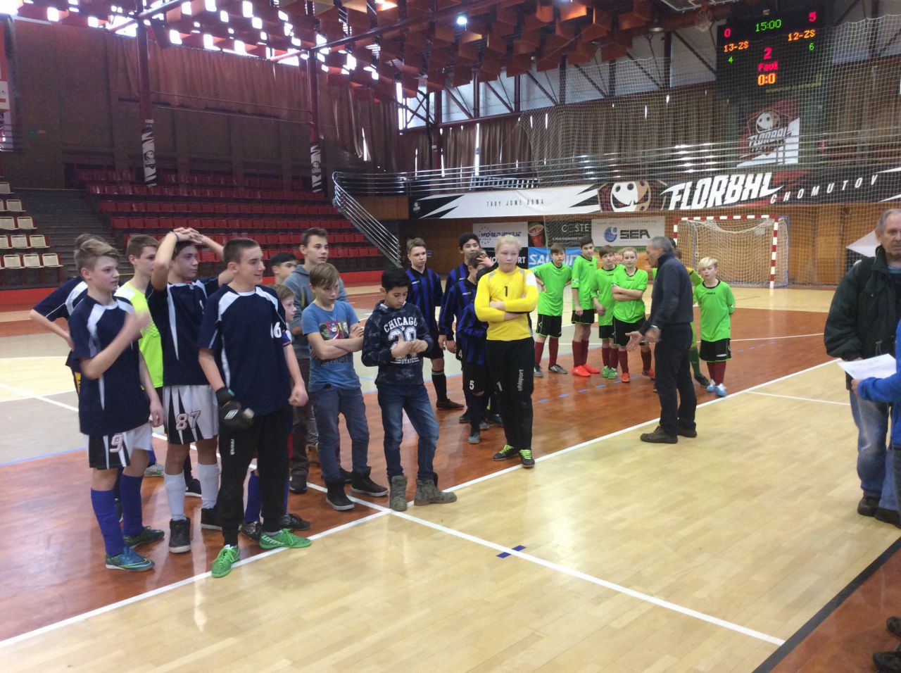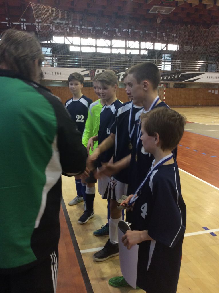 Druhý náš dnešní zápas Memoriálu Václava Čecha ve sportovní hale v Chomutově jsme hráli se školou v Březně.