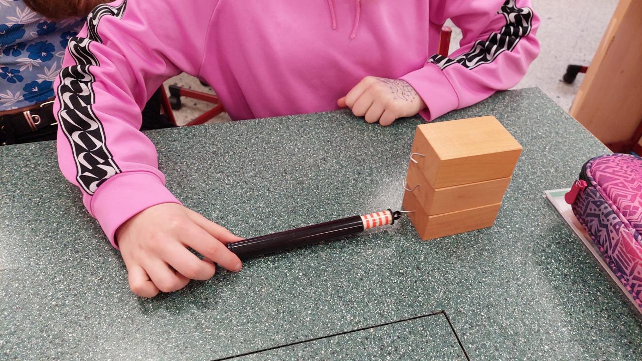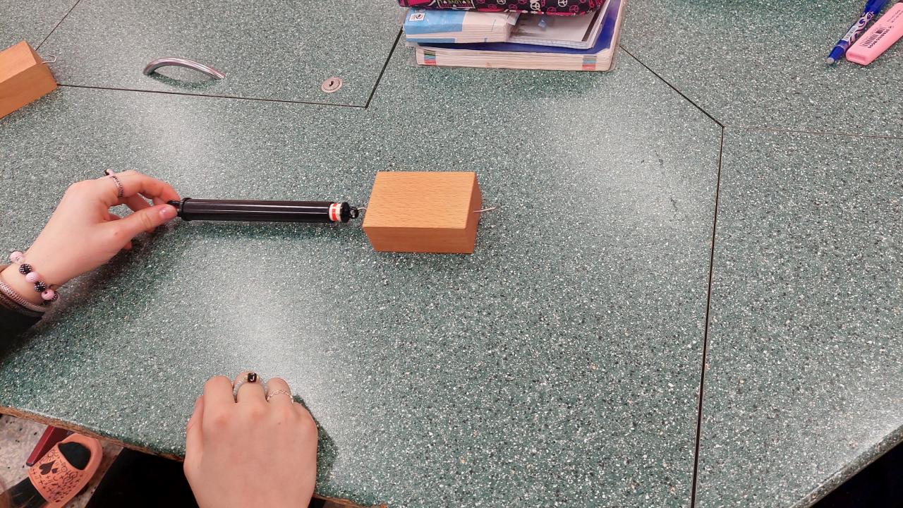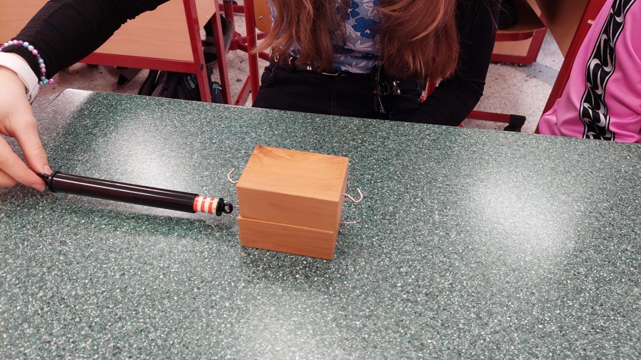 Při laboratorní práci si sedmáci vyzkoušeli , jaké podmínky ovlivňují velikost třecí síly, použii i své oblečení, které jim posloužilo jako "drsnič povrchu". Určovali také směr třecí síly.