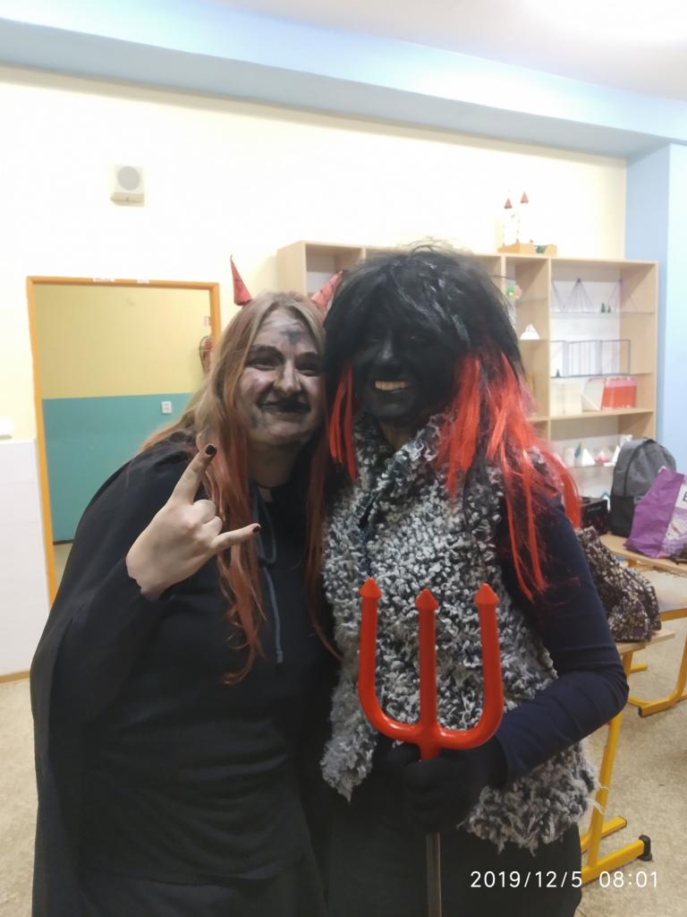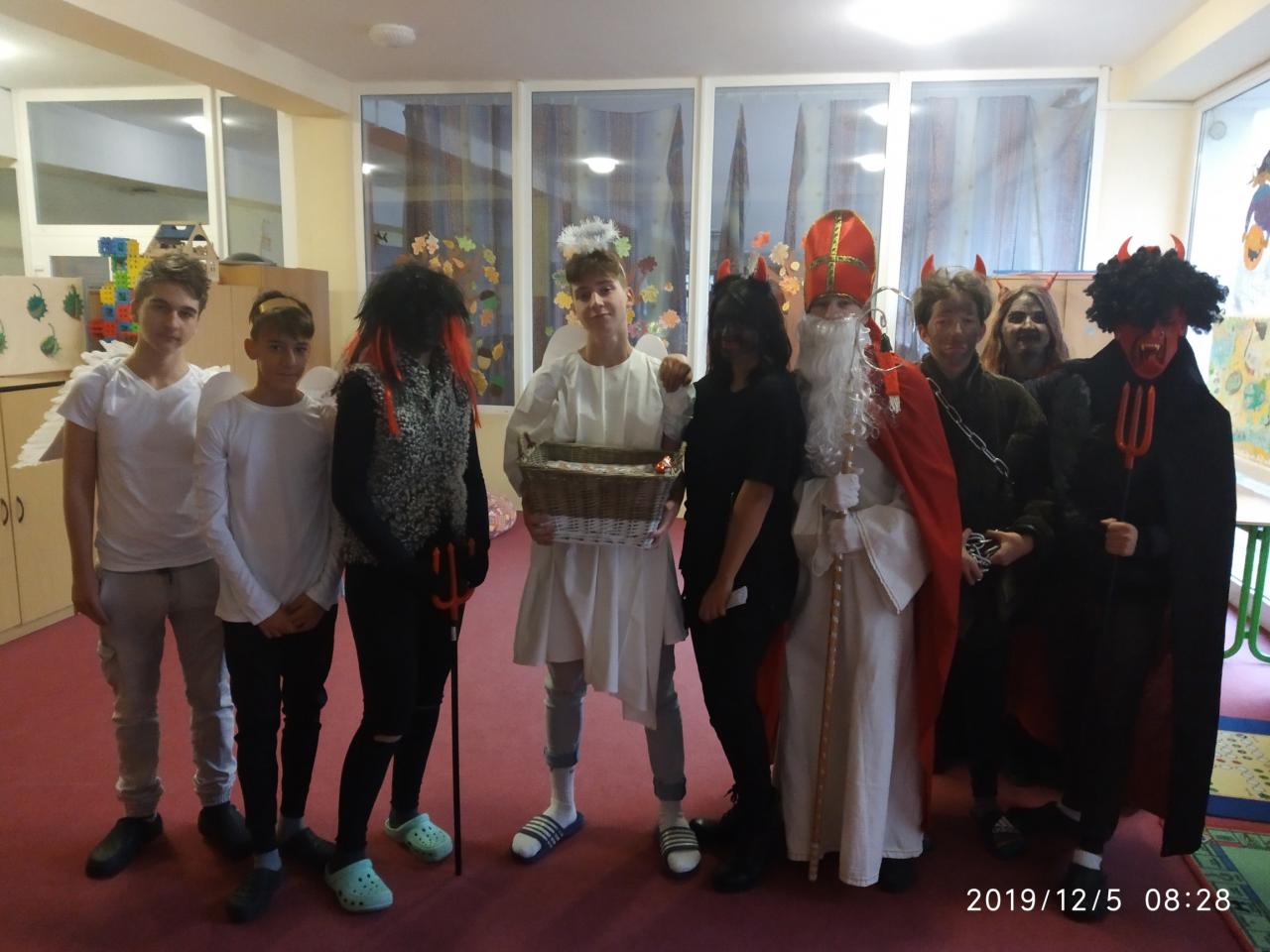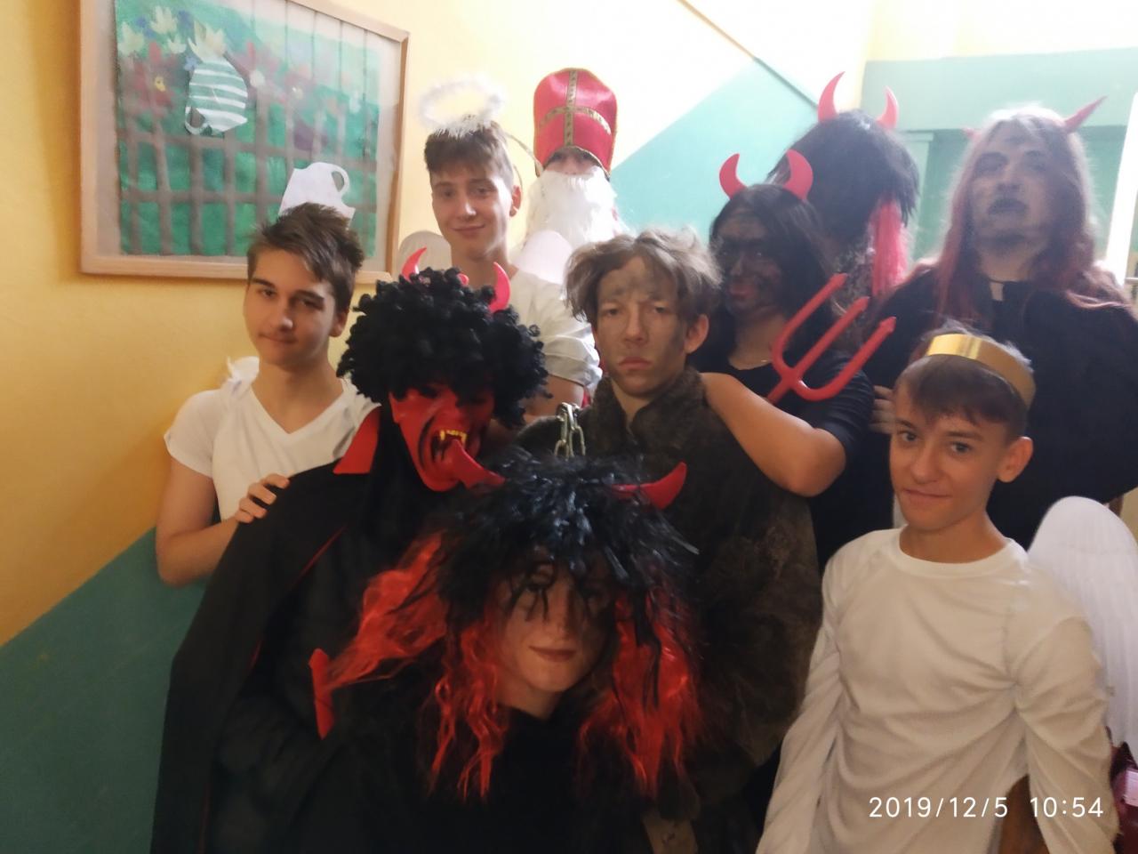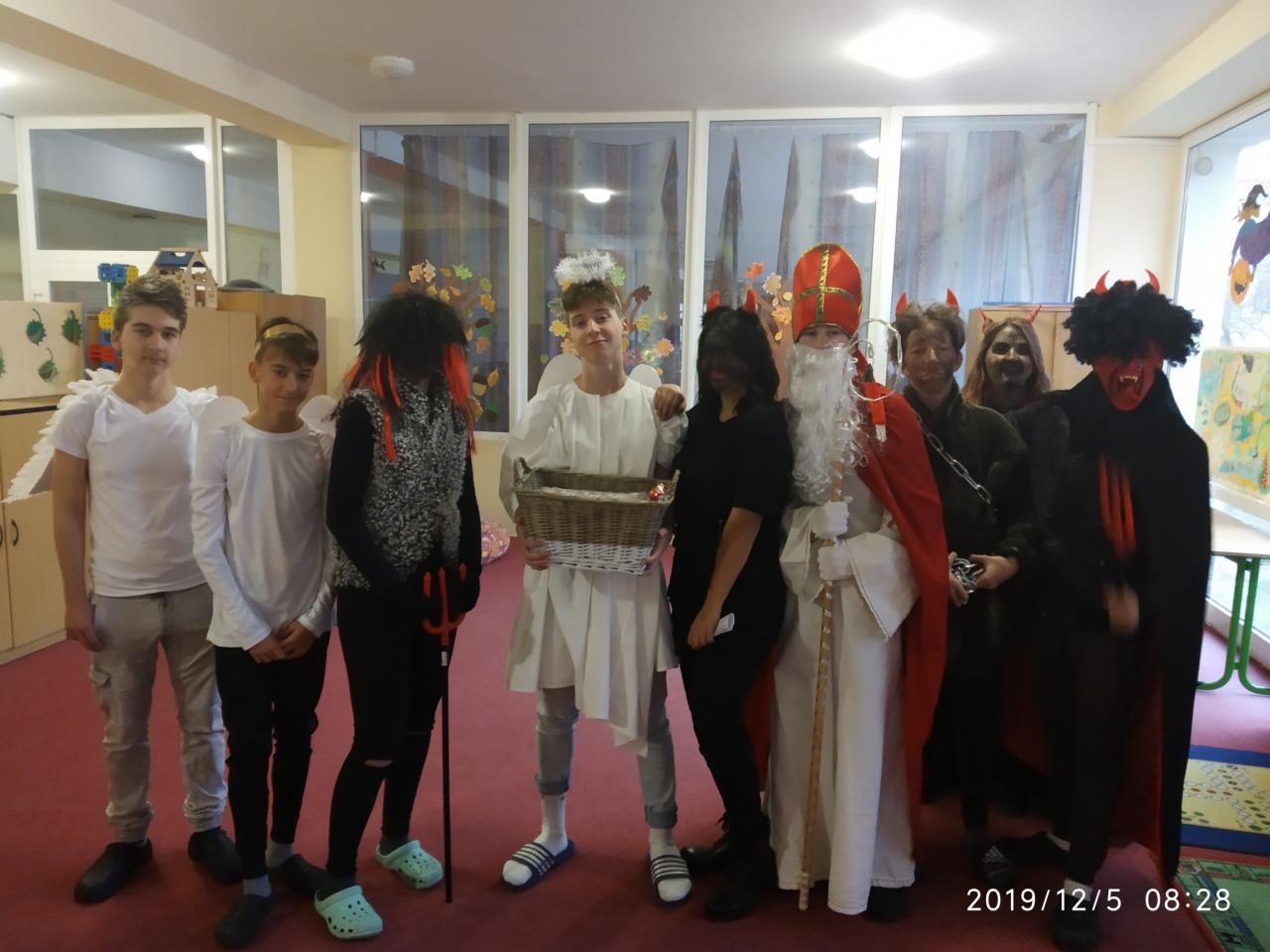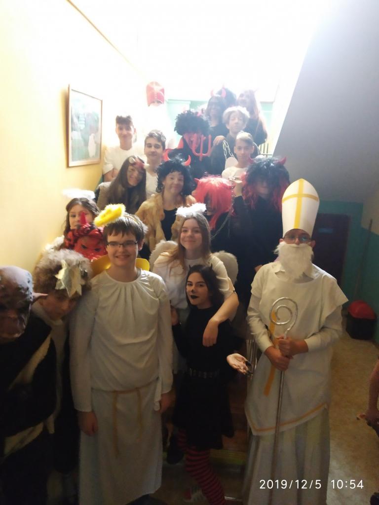 Dva Mikuláše doplnilo spoustu čertů i andělů. Postupně prošli všechny třídy prvního stupně, kde trošku postrašili, ale nakonec obdarovali všechny svoje mladší spolužáky z 1. stupně.