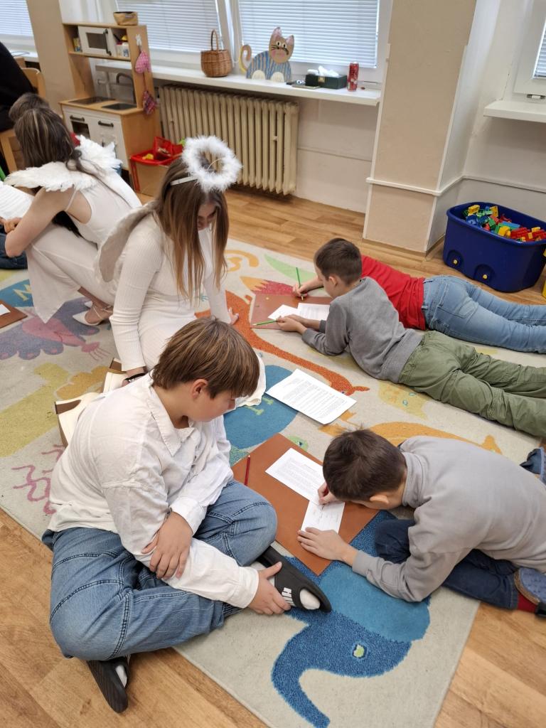 Centrum psaní – děti psaly přání nikoliv sobě, ale někomu jinému – krásné cvičení empatie.