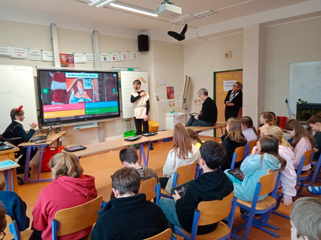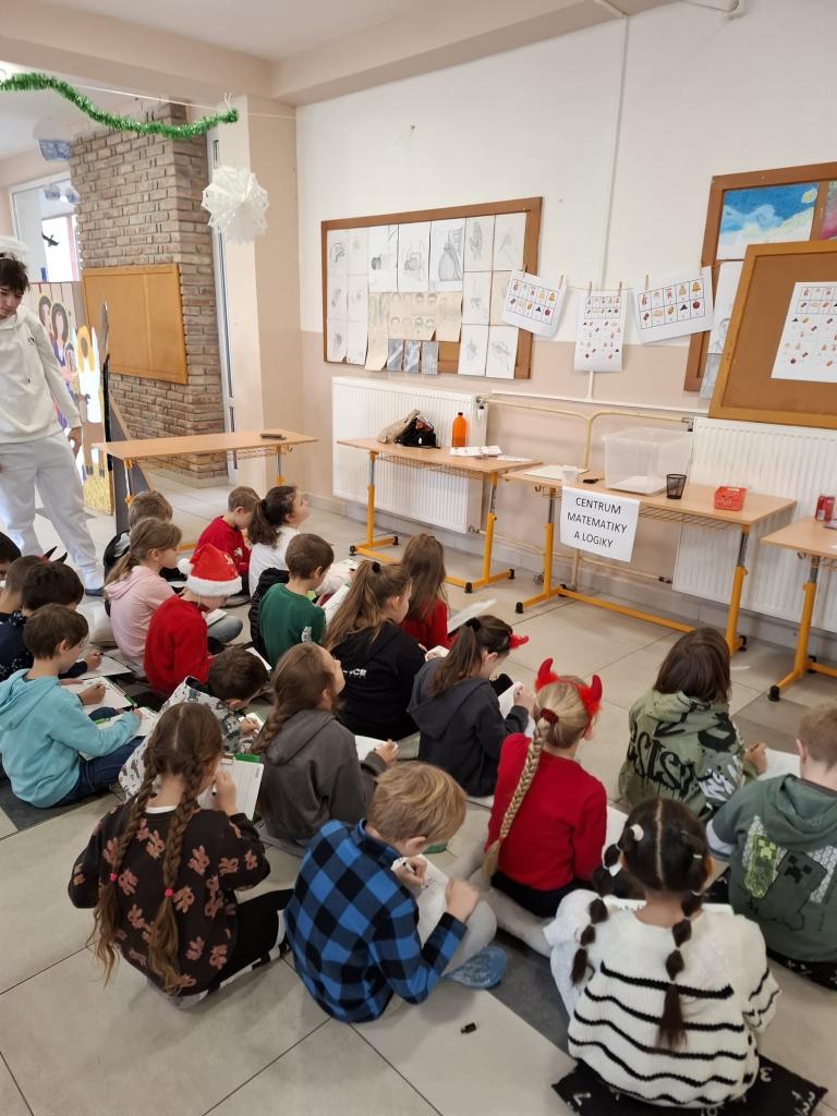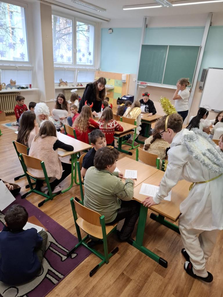 Centrum čtení – seznámení s příběhem sv. Mikuláše; dramatické čtení žáků 9. ročníku pro 1.–2. třídu, pro starší žáky práce s textem a tvorba „pětilístku“.