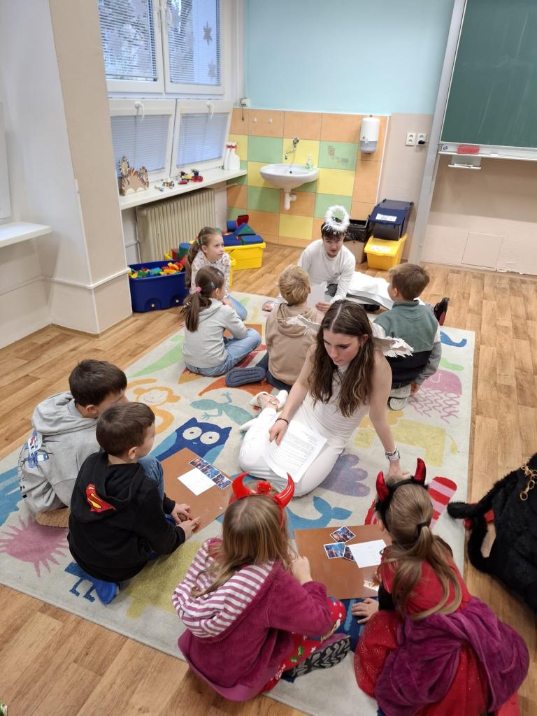 Děti se s obrovským nadšením pouštěly do jednotlivých aktivit. Procházely několika centry, kde se učily spolupracovat, naslouchat jeden druhému a nebát se nových výzev. A co je nejdůležitější – nechyběla statečnost. I když se mezi nimi objevili naši „čertíci“, prvostupňové děti překvapily odvahou a klidem, díky kterým si všechny úkoly zvládly užít naplno.