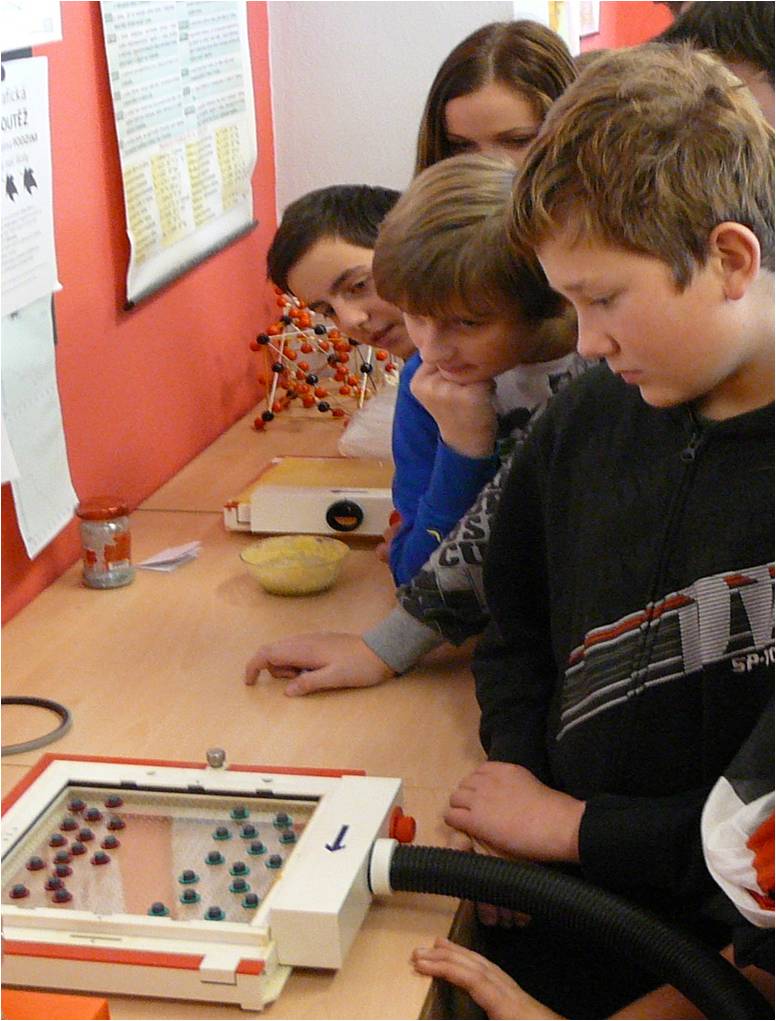 Praktická hodiny fyziky v 8. třídách ukázala žákům na modelech to, co ve skutečnosti vidět vůbec nemohou. Poznatky o vnitřní energii těles jsou postaveny na pohybu atomů molekul v tělesech, ale tyto částice jsou tak malé, že je žáci nemohou vidět a proto si lze některé jevy jen obtížně představit. Pomocí modelace (tedy vlastně zviditelnění) pohybu molekul si předvedli, jak probíhá Brownův pohyb a difúze, jak ovlivňuje teplota rychlost pohybu částic v tělese a tím i jeho vnitřní energii.