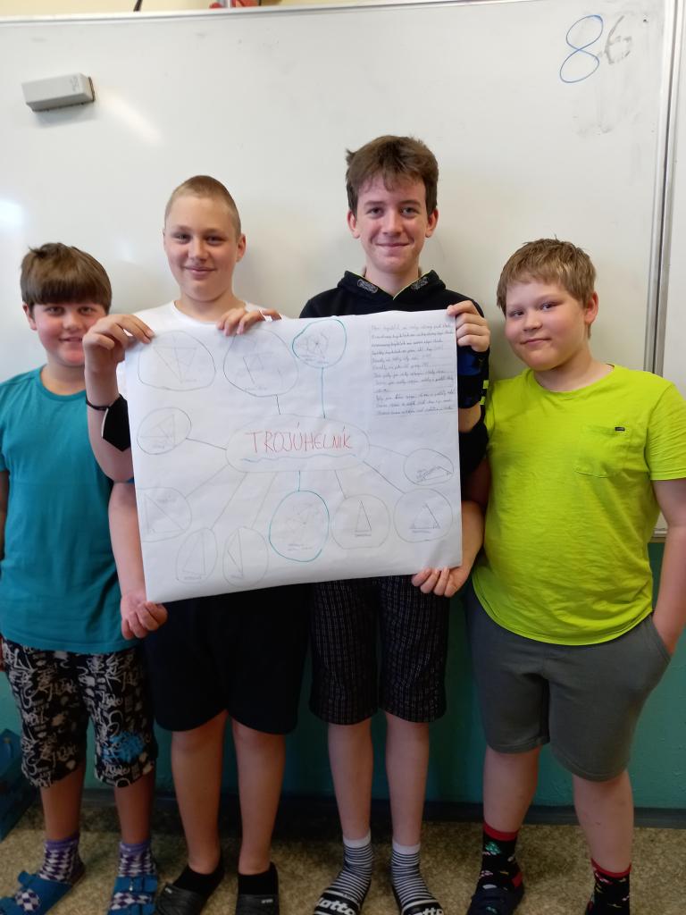 Šesťáci si v rámci hodiny matematiky při skupinové práci upevňovali veškeré informace, které získali o trojúhelníku. Každá skupina pojala svoji práci jinak a vše dali v rámci myšlenkové mapy na papír.