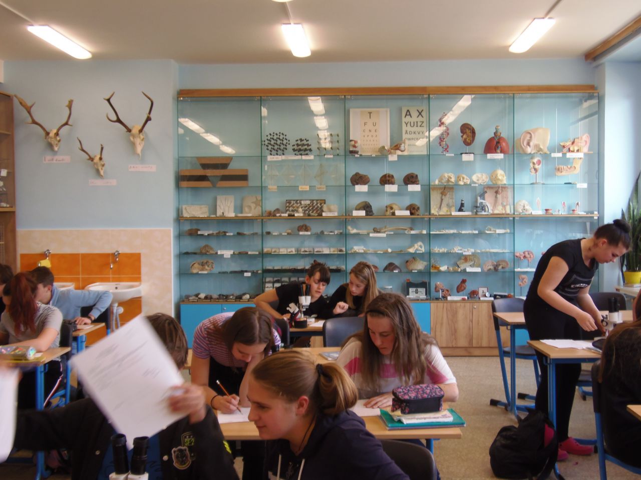 Těsně před jarními prázdninami začala rekonstrukce učebny biologie. Sbírky jsme pečlivě uschovali a propuklo to. Zmizel starý nábytek, přijel malíř, který běhal po třídě na štaflích. První jarně - prázdninový den přijela ze severní Moravy firma s novým nábytkem. Montáž skleněných vitrín byla náročná, ale do konce prázdnin bylo hotovo. Následovalo veliké stěhování našich přírodovědných sbírek. Výsledek se nám moc líbí, zveme všechny k prohlídce.