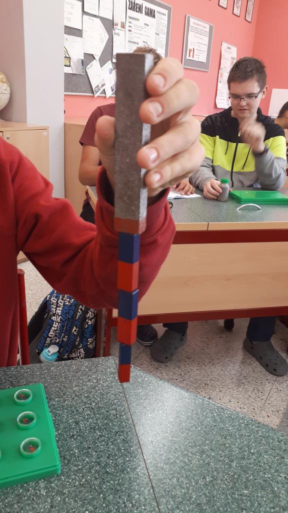 9.AB se pustila do objevování magnetických jevů. Děti si vyzkoušely magnetickou sílu mezi magnety a to jak přitažlivou, tak i odpudivou. Hledaly materiály z feromagnetických látek, které se k magnetům přitahují, zkoumaly magnetické pole Země a pomocí kompasů potvrzovaly rozložení zeměpisných a magnetických pólů naší Země.V neposlední řadě "zviditelnily" mag.pole pomocí indukčních čar vytvořených z malinkých kovových hoblinek tím, že magnet jimi doslova "pocukrovaly". Jak se jim to vyvedlo, je vidět na obrázcích.