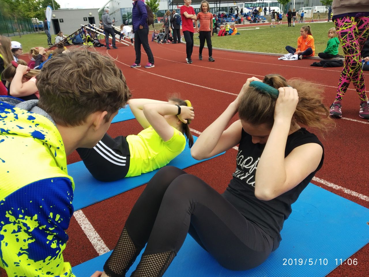 Před poslední disciplínou bylo naše družstvo druhé. Druhá příčka by zajišťovala postup na zářijové republikové finále. Náskok na třetí byl ale pouhých 160 b, což v konečném součtu je opravdu málo. Naši závodníci tušili, že musí v poslední volitelné disciplíně - běhu na 1000 m nebo driblingu, zapnout na 150 procent. Skvělý výkon předvedla v driblingu Adéla Kočí, která a dvě minuty nadriblovla 364 m. Po doběhnutí posledích metrů bylo jasné, že se všichni vydali za všech sil. Ale vyplatilo se. Druhou příčku jsme uhájili, a tak se můžeme těšit na Republikové finále.