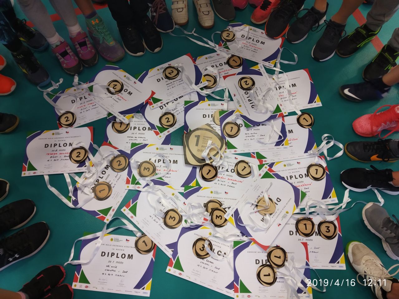 Nejhodnotnější výkon v trojskoku předvedl Petr Šmíd, který skočil 7,40 metrů. V hodu medicinbalem pro změnu ukázal skvělý výkon Matyáš Hrůza - 14,25 metrů. Pak následovala silná disciplína našich žáků - skok přes švihadlo. Hranici 300 přeskoků atakovalo hned několik žáků - Klára De Stefanis a Kateřina Rezková - 280 přeskoků, Veronika Rožičová dokonce 290 přeskoků za dvě minuty. V klicích si naše družstvo upevnilo vedení a do poslední disciplíny, kterou byl běh na 1 km měli vypracovaný luxusní náskok téměř tří tisíc bodů.