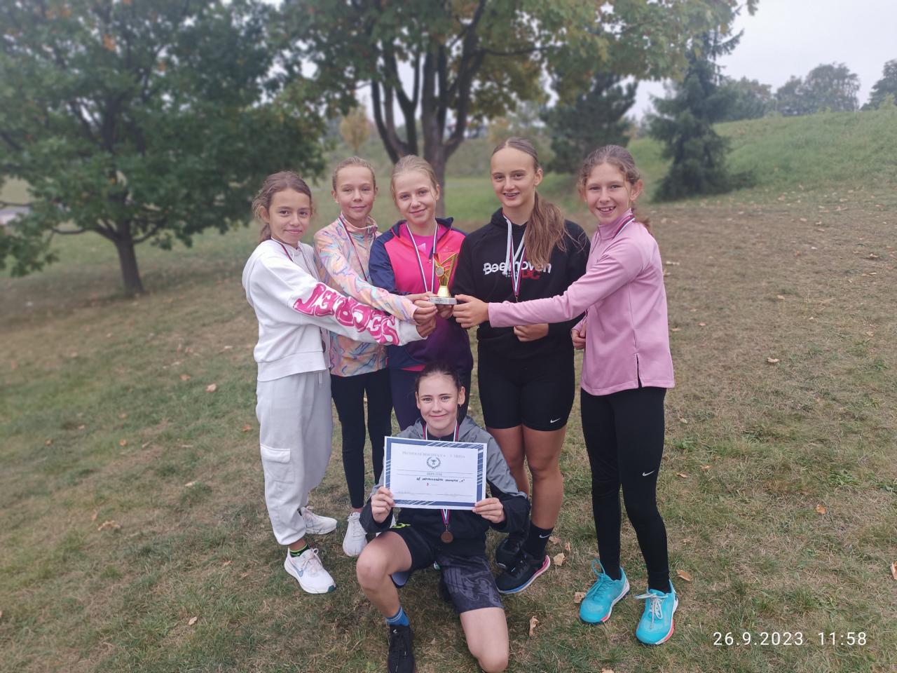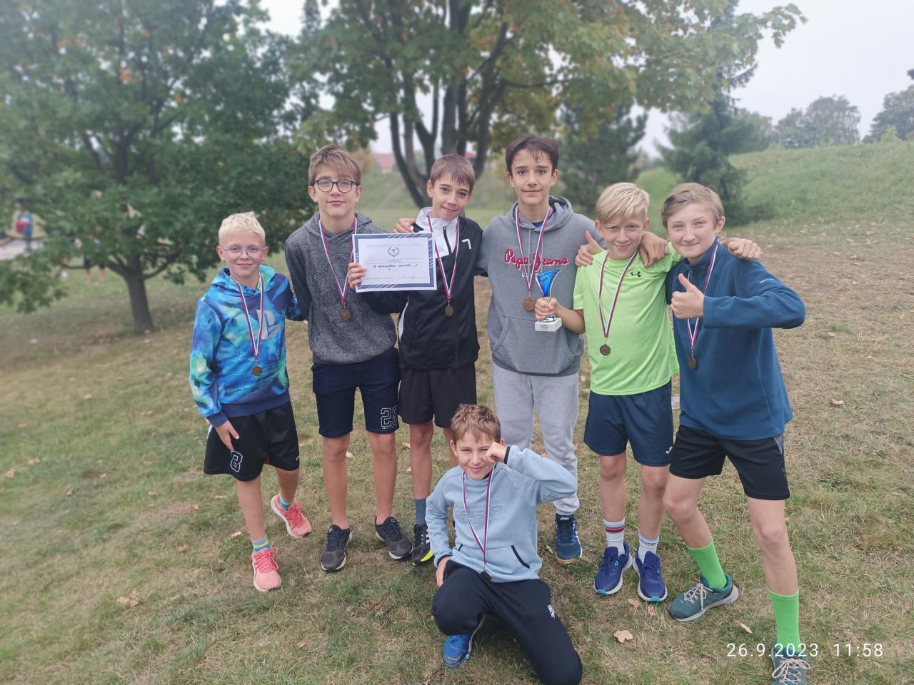 41 žáků naší školy se zúčastnilo okresního kola v přespolním běhu. Jedinou kategorii, kterou jsme bohužel díky nemoci neobsadili, byla kategorie starších dívek, ktde jsme měli pouze tři zástupkyně a neměli jsme tedy složený tým.