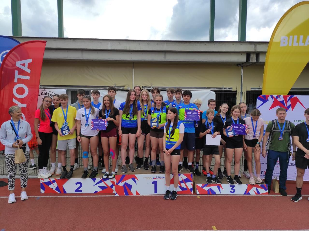 Vyrovnanost všech členů týmu vedla od první disciplíny ke skvělému výsledku. A tím i letos bylo první místo našeho družstva. Skvostnými výkony se blýskli především naši softbalisté v hodu kriketovým míčkem, kdy svorně Matouš Loub i Matěj Pronteker hodili 71 metrů, basketbalista Viktor De Stefanis připojil parádních 385 metrů v driblingu a Kuba Faltejsek zase skočil skvělých 5, 39 m do dálky. V týmu je doplnily dívky Anička Husinecká, Barča Chmelíková, Anežka Vávrová a Verča Němečková. Společně tedy mohli oslavit krajského přeborníka ve víceboji.