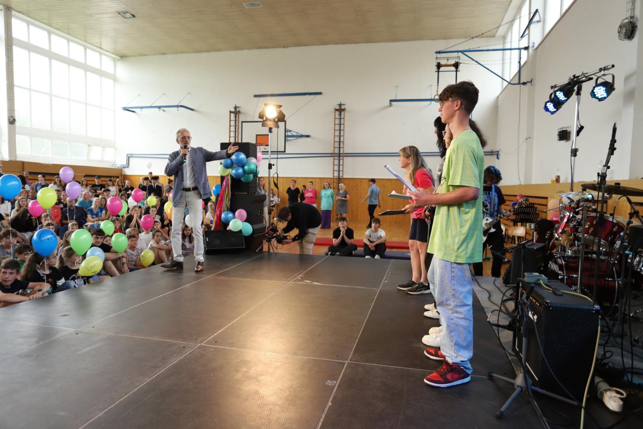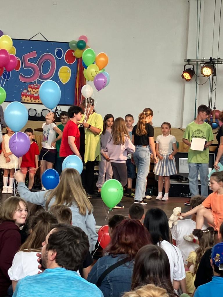 Neskutečná narozeninová jízda a dechberoucí atmosféra! Možná toto označení nejlépe vystihuje včerejší 50. narozeniny školy ZŠ Chomutov, Ak. Heyrovského. Akce se chystala ve stylu RETRO, zahrnovala muzejní výstavu dob minulých, mnozí se našli na vzpomínkových fotkách ve fotogalerii, prohlédli si naše školní televizní studio HEY TV, zavzpomínali si na mládí při retrohrátkách, nebo s tělocvičným nářadím, mohli s Astronomickou společností Chomutov pozorovat Slunce, které se na nás aspoň odpoledne usmálo. Mnozí návštěvníci se zvěčnili ve fotokoutku, občerstvili se ve stáncích a poseděli v zahradě školy, nebo se po letech setkali se svými spolužáky v bývalých třídách. Mysleli jsme i na ty, kteří potřebují naši pomoc, a charitativní akcí jsme vybrali na postiženého devítiletého Románka Fišera téměř 24 000,-. Samozřejmě tím největším lákadlem bylo pódium, které bylo umístěno nakonec v tělocvičně místo avizovaného prostranství před školou, protože počasí si s námi trochu hrálo. A právě na pódiu probíhala přehlídka žákovských vystoupení, rozezpívali jsme se a rozvlnili se starými hity uplynulých 50 let, zahrály i kapely složené z našich absolventů, rodičů i přátel školy. Dojemnou chvílí bylo večerní narozeninové přání škole, kterou ztělesňuje pan ředitel Miloš Zelenka. Škola byla obdarována knihobudkou, zmenšeným modelem školy, písní paní učitelky Markové, která pohltila všechny přítomné, škola dostala i nový název vestibulu náměstí Miloše Zelenky. Na závěr narozeninových přání v triku připomínajícím rok vzniku školy 1974 pan ředitel popřál škole do dalších let a odstartoval večerní Garden music party. Sobota přidala ke všem atrakcím jako bonus oslavu Mezinárodního dne dětí.
