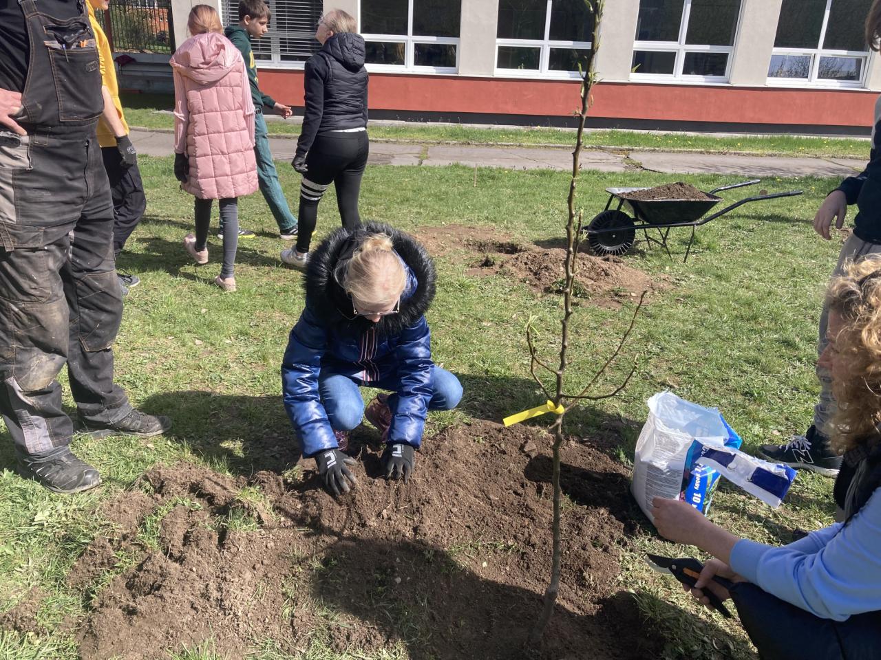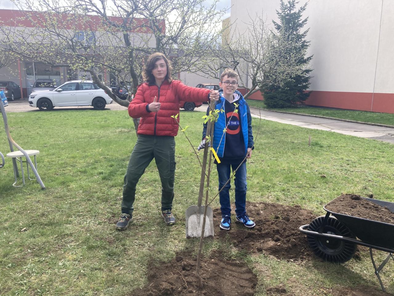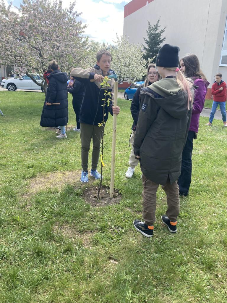 Jsme nadšeni, že jsme společně s dětmi z druhého stupně zasadili 8 ovocných stromů na našem školním pozemku! Tato iniciativa poskytuje vzdělávací příležitost pro naše žáky, kteří se tak mohou naučit péči o přírodu od samého začátku. Jsme rádi, že můžeme společně přispět k budoucnosti našeho prostředí a těšíme se na sklizeň z našich nových stromů. Zasadili jsme třešně, které dozrávají před koncem školního roku a hrušně dozrávající na začátku školního roku.