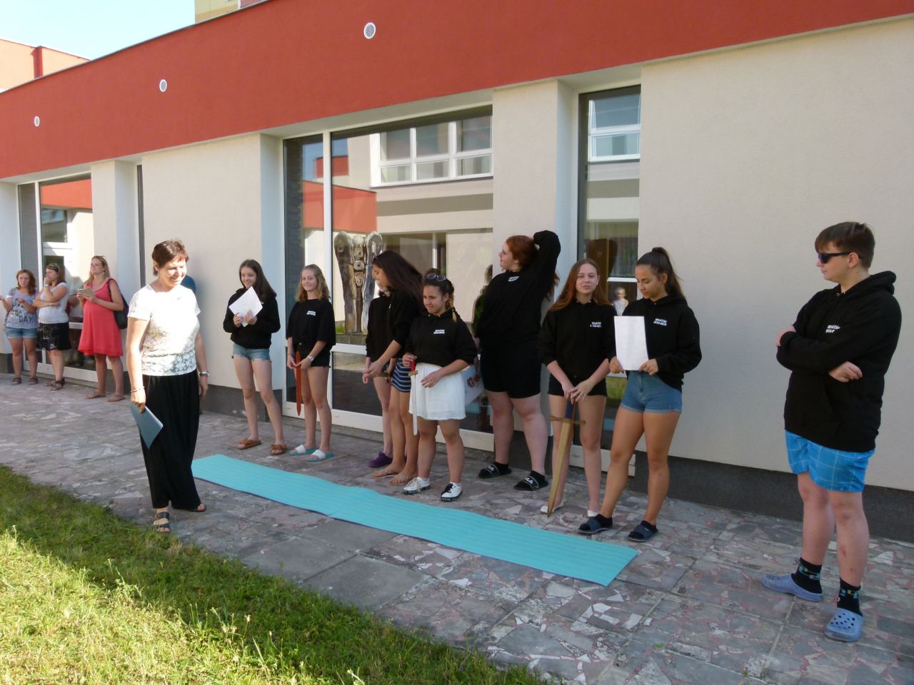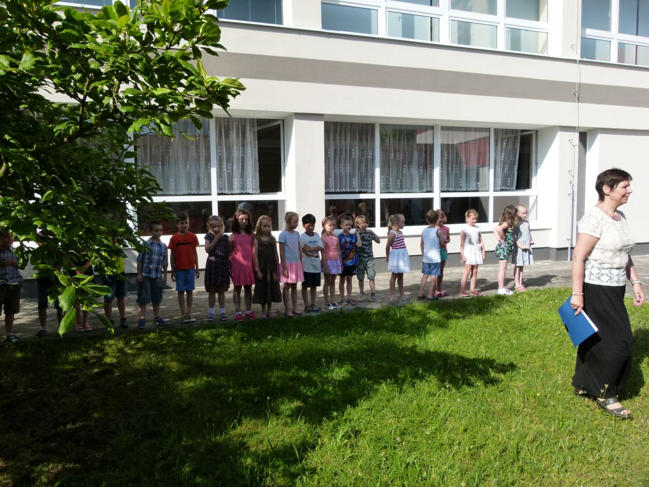 Deváťáci při tradiční ceremonii pasovali prvňáčky na skutečné školáky a symbolicky jim předali školu, kterou oni opouští. Prvňáčci při pasování skládali slib, že budou dobrými kamarády a budou se o školu dobře starat.