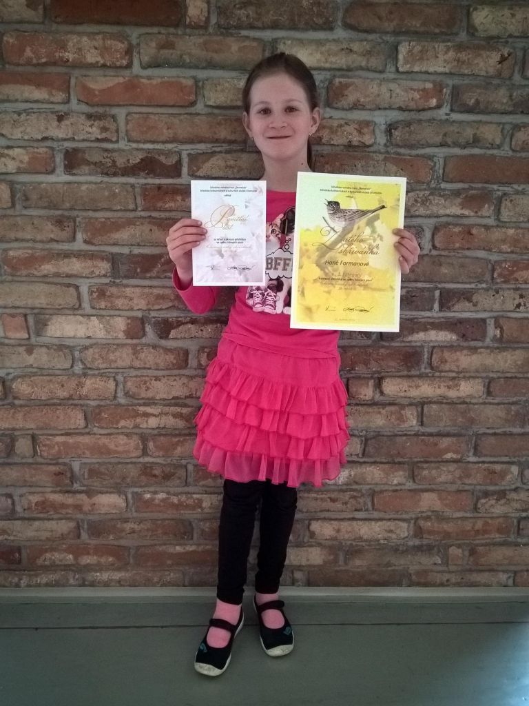 Během měsíce května proběhlo školní kolo pěvecké soutěže. Soutěž je v oblibě především u žáků 1. stupně a svědčí o tom 26 přihlášených. Úkolem každého z nich bylo zazpívat jednu lidovou píseň. Při vyhlašování výsledků si děti odnášely diplomy, pozornosti a někteří z nich také možnost postupu do okresního kola soutěže pod názvem Chomutovský skřivánek, které se tradičně konalo v Domečku. Možnost využila a hned "Zlatého skřivánka" získala Hanička Formanová z 3.A, která soutěžila v kategorii 1.-3.tříd. Všem soutěžícím děkujeme za účast a blahopřejeme! Velkou gratulaci si zaslouží právě Hanička, za skvělou reprezentaci naší školy. Na malé zpěváčky se budeme těšit i příští rok.
