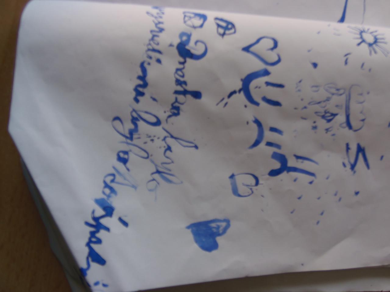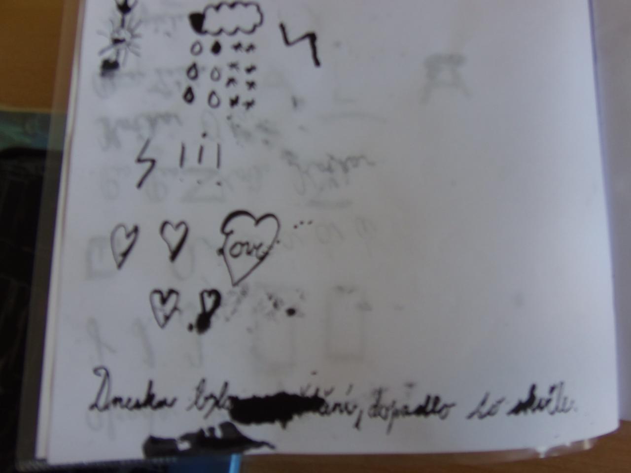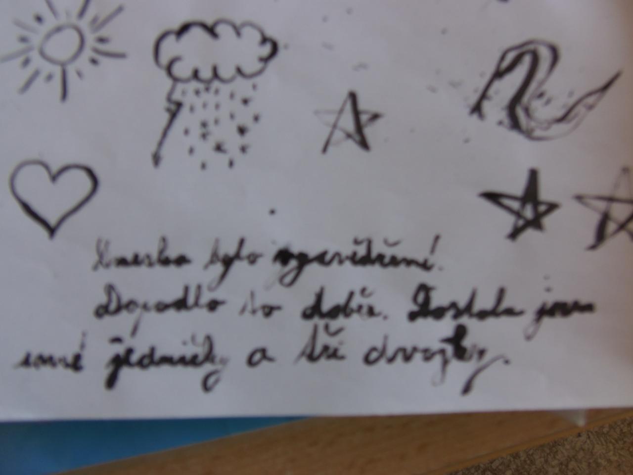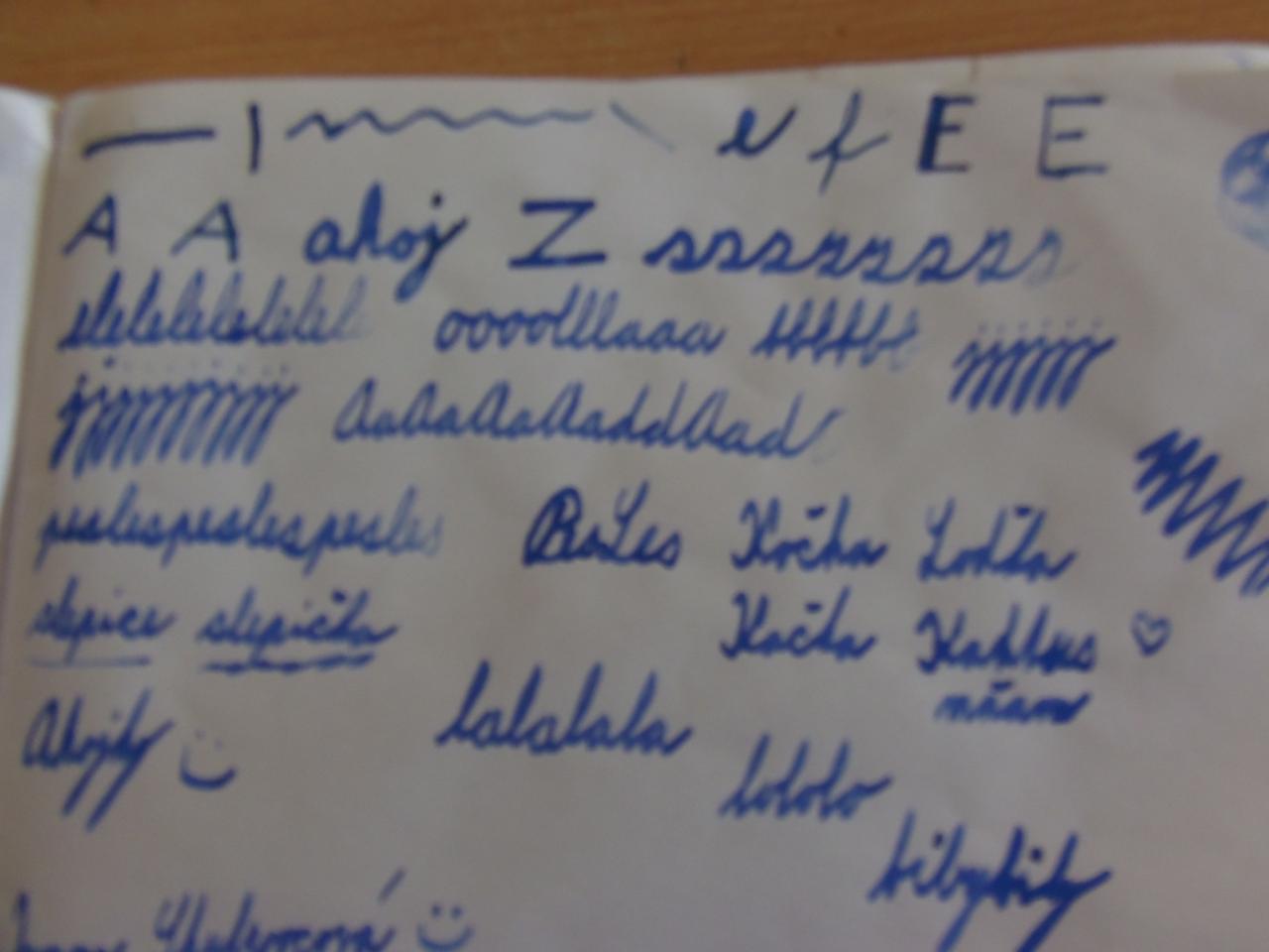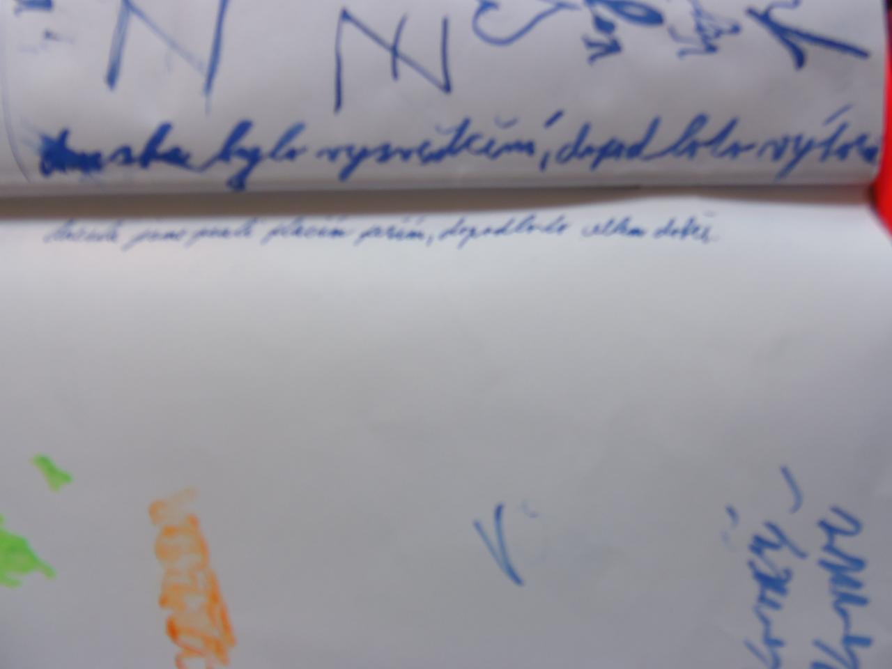 Protože se učíme o ptácích, zkoušeli jsme v hodině biologie psát ptačím peřím. Chtělo to trochu cviku, na závěr spoustu mýdla, ale celkem se nám dařilo