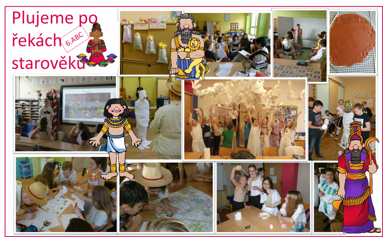 Dne 30.1.2019 se na naší škole konal dějepisný projekt završující výuku o staroorientálních státech - Plujeme po řekách starověku. Na chodbě jste klidně mohli potkat Mezopotámce, Egypťana, Indku, Číňana nebo Palestince. Byli to zemědělci, vládci, obchodníci, tanečnice, otroci, a dokonce jste mohli potkat i mumii. Navzdory jejich původu z různých sociálních vrstev a zemí dokázali efektivně spolupracovat ve skupinách při plnění úkolů. Zvládli balzamovat mrtvého faraona, vytvořit bez mluvení společný plakát o různých starověkých artefaktech, rýt do hliněné destičky, porazit Goliáše a vyřešit Šalamounovy hádanky, zrelaxovat se s mandalkami nebo vyřešit úkoly pomocí slavného čínského vynálezu – kompasu. Jednou z nejzajímavějších částí projektového dne byla bez pochyb přednáška o Číně v podání Martina Petra, studenta chomutovského gymnázia. Marti strávil v Číně část svého dětství a velice poutavou a dětem blízkou formou vyprávěl o tamním životě a zvyklostech. Dokonce stihl dětem dát lekci, jak správně jíst čínskými hůlkami.