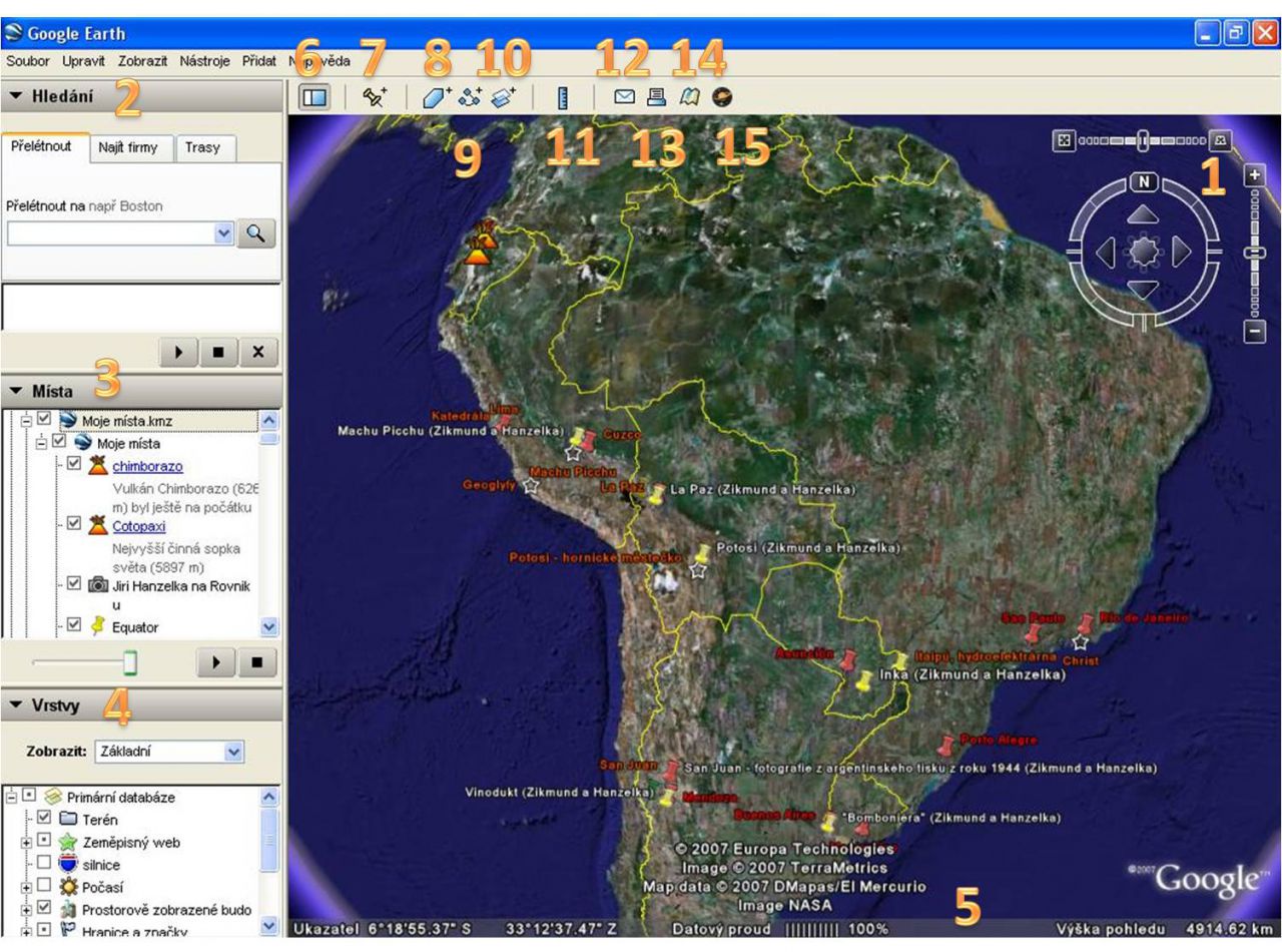 Ovládání Googleearth je velice jednoduché.