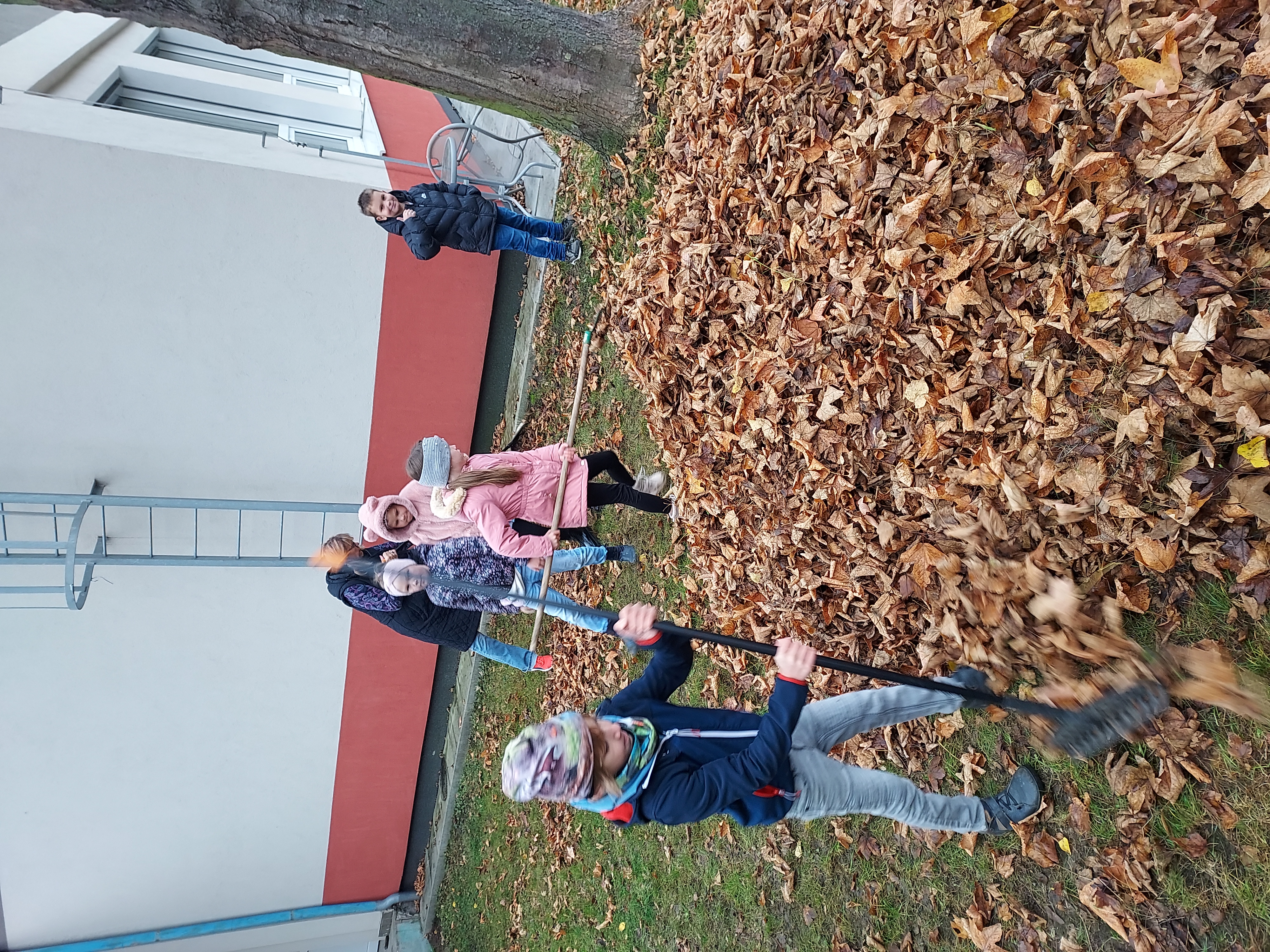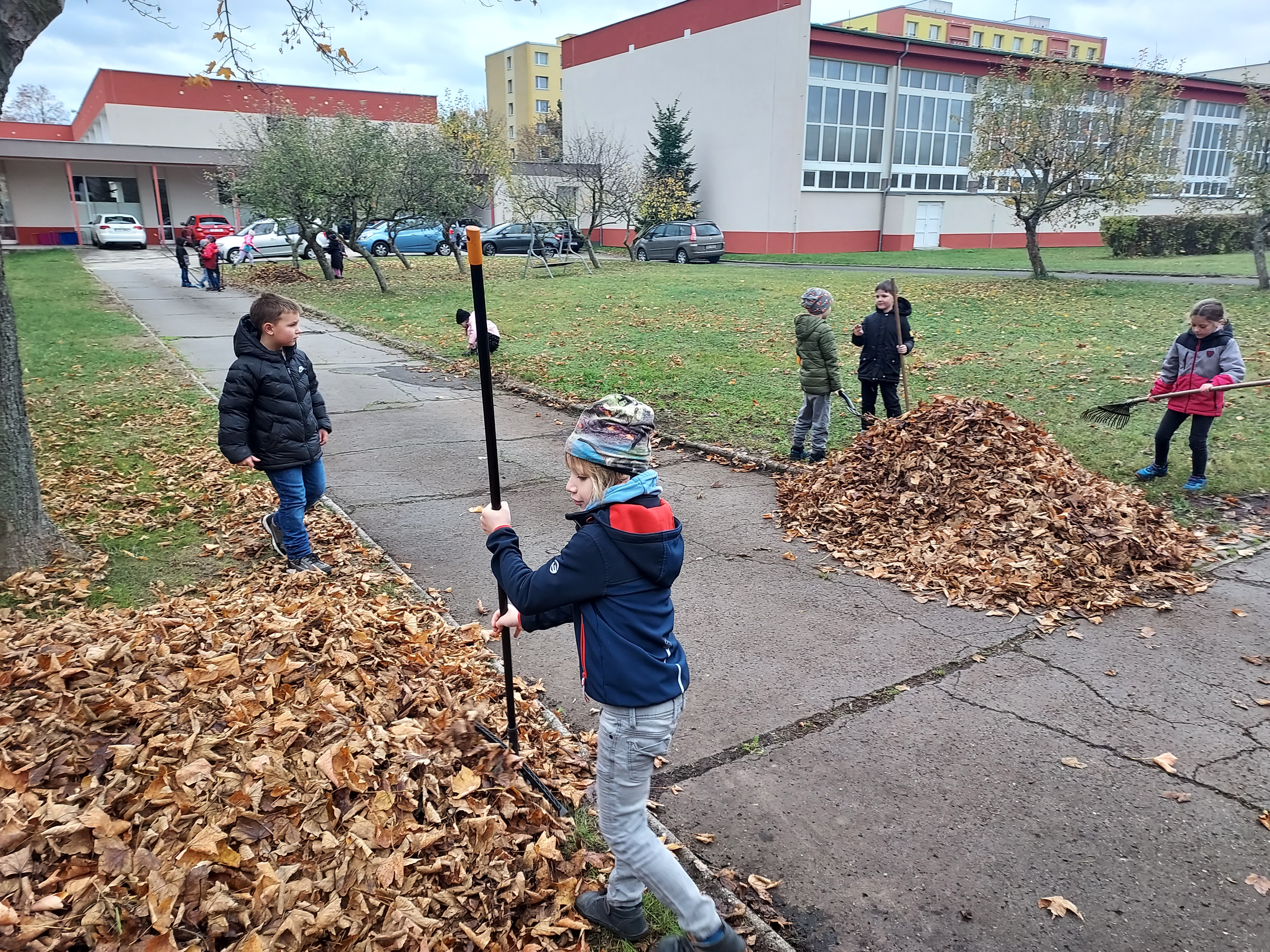 Dnes jsme si vysvětlili se svými žáky, jak je důližité připravit zahradu na zimu. Řekli jsme si co a k čemu jsou hrábě, koště, vidle a ukázali jsme si jak se s nimi pracuje. Po dohodě s naším panem školníkem jsme se vydali na zahradu. Shrabali jsme listí na hromady, aby se nechalo snadno odvézt. Děti pracovaly s chutí a měly radost z vykonané práce. Velká pochvala našim dětem a sladká tečka na konec.