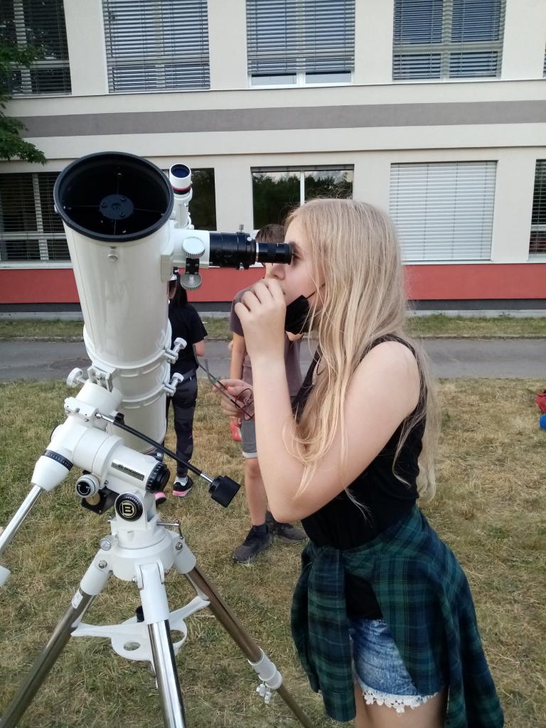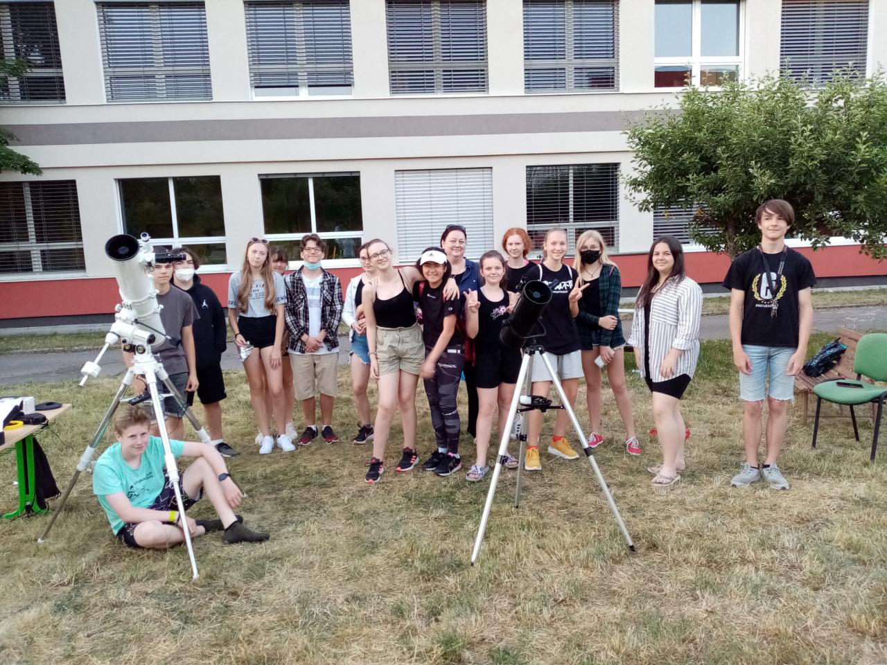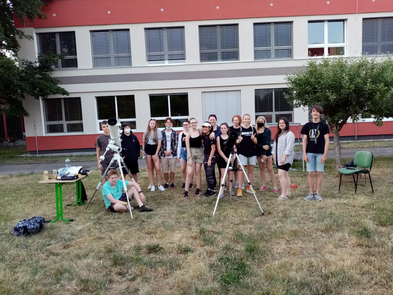 V pátek 18. 6. 2021 jsme se na zahradě školy sešli k pozorování povrchu Měsíce. K pozorování jsme využili náš hvězdářský dalekohled. Počasí nám přálo. Měsíc není dobré pozorovat při úplňku, moc bychom toho neviděli, zvolili jsme tedy termín před úplňkem.